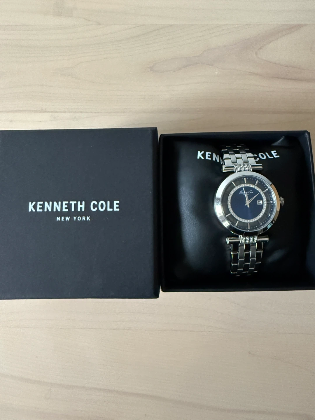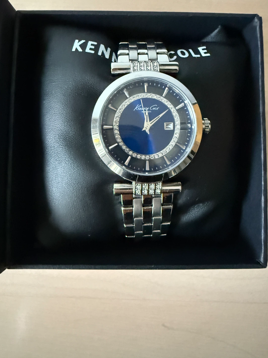 Selling Kenneth Cole New York watch! It comes in its original box and has a beautiful blue face with a silver band. The watch has some lovely detailing around the face and on the band itself. Perfect as a gift or a treat for yourself!