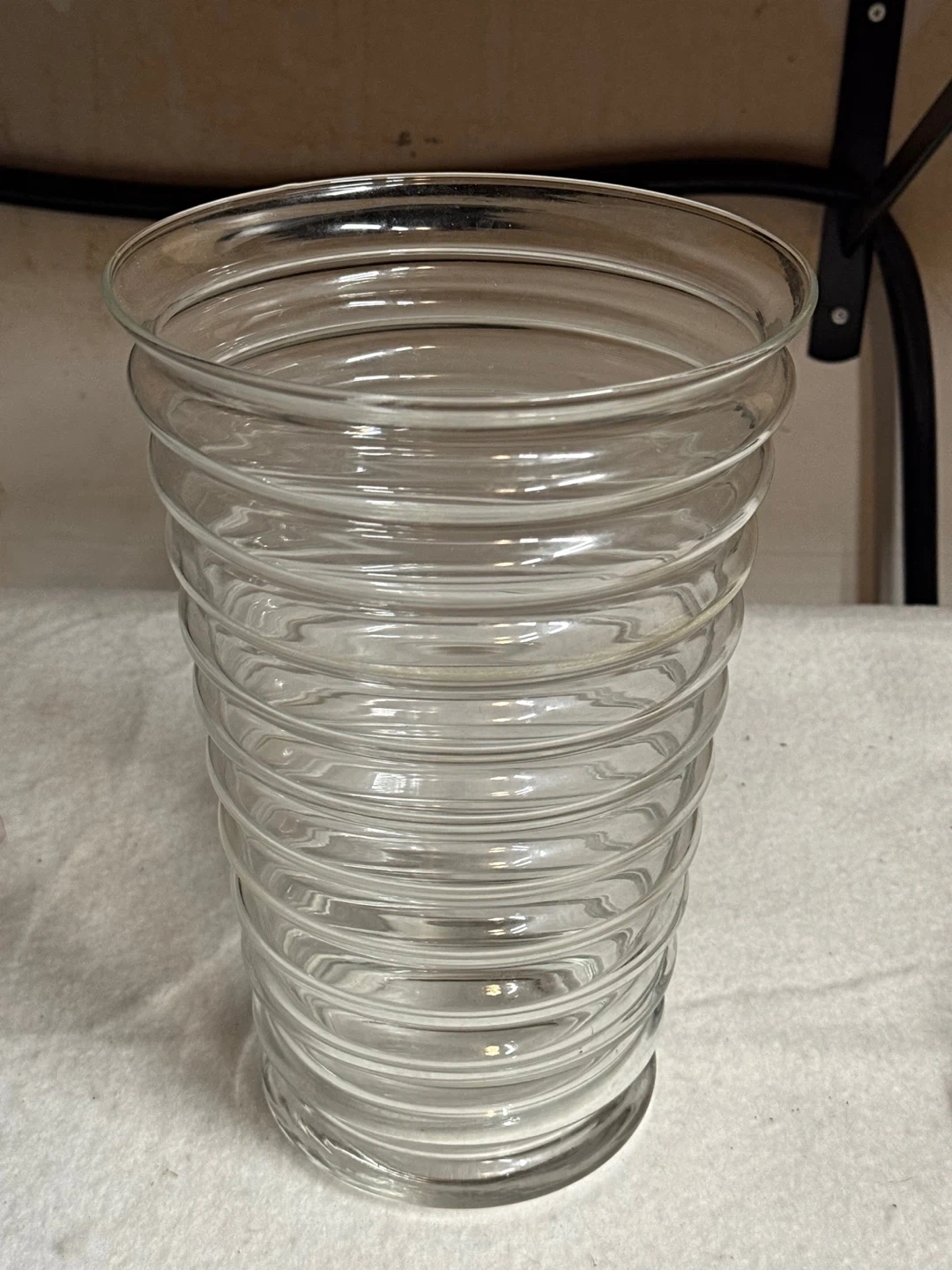 Selling a clear glass vase with a ribbed design! It's in great condition and would look lovely with flowers or as a decorative piece on its own. CASH ONLY PICK UP ONLY