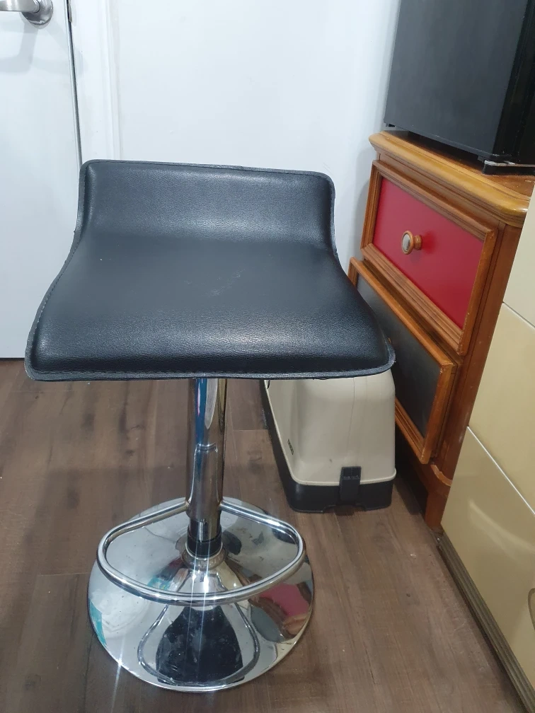 Selling a black adjustable height bar stool. It's in great shape and ready to add some style to your kitchen or bar area! The seat is black and the base is chrome.