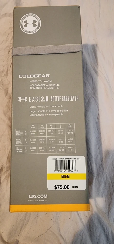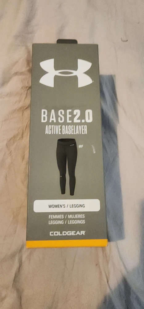 Selling a pair of Under Armour Base 2.0 Active Baselayer leggings in size MD/M. These women's leggings are designed to keep you warm with their ColdGear technology. They are light, flexible, and breathable. Originally bought for $75 CDN + tax
