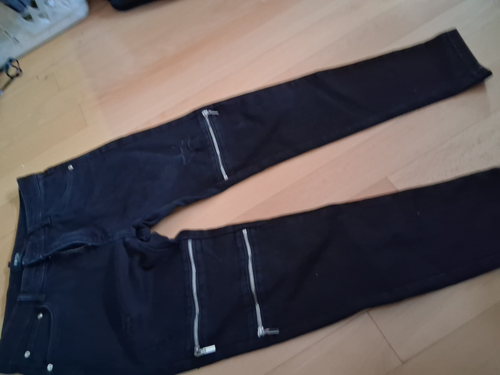 Selling a pair of FMYDI Roma black jeans with unique zipper accents! They are in great condition and ready for a new home. These jeans have a stylish and edgy look, perfect for adding some flair to your wardrobe. Feel free to reach out if you have any questions