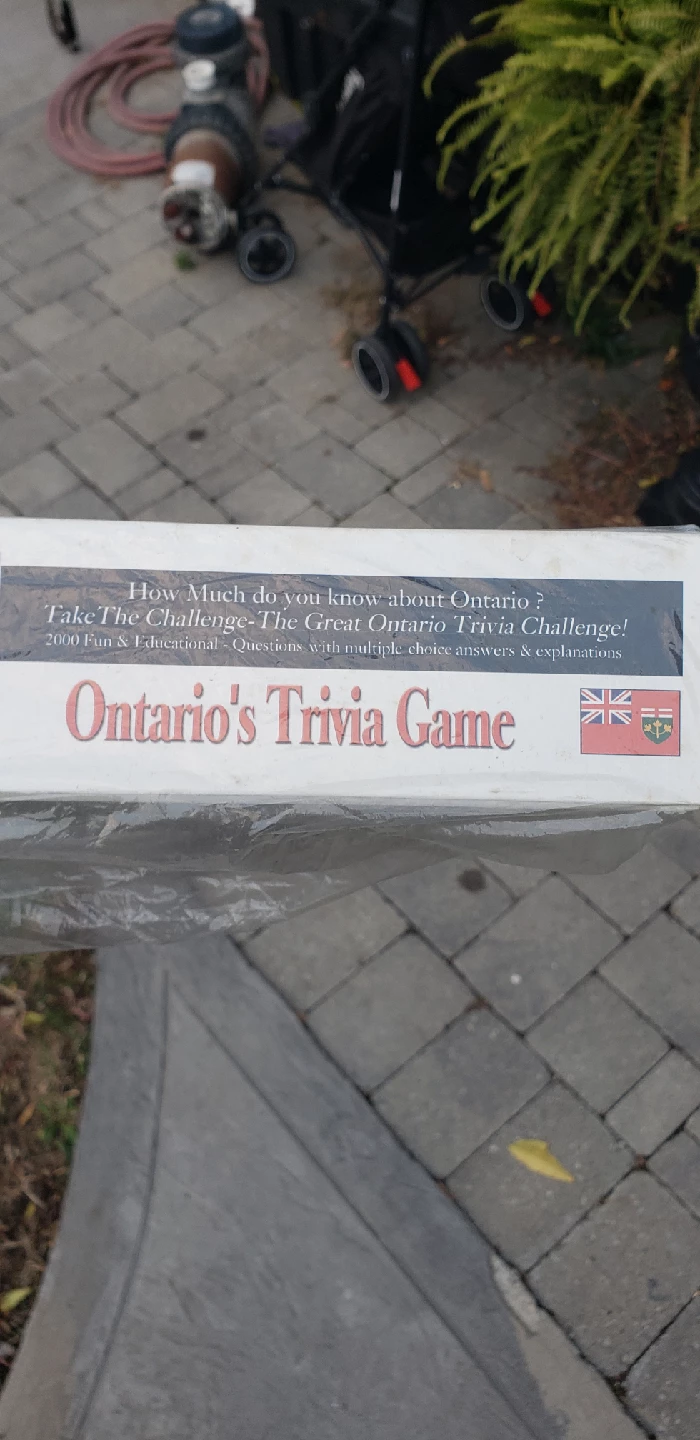 1 / 31 / 3Buy & SellTHE GREAT ONTARIO TRIVIA GAME - Ontario's Trivia GameTHE GREAT ONTARIO TRIVIA GAME - Ontario's Trivia GameFreeThe Great Ontario Trivia Game Free Danforth & Pharmacy area pick up onlyConditionGoodWHERE TO MEETCheck LocationView MapSELLERSachaOakridge31832 reviews2 chats·4 favorites·35 viewsSEND CHAT TO SELLERHi Sacha! I’m interested in your listing.Hi Sacha! I’m interested in your listing.Get the Karrot app to chatSign In to chat