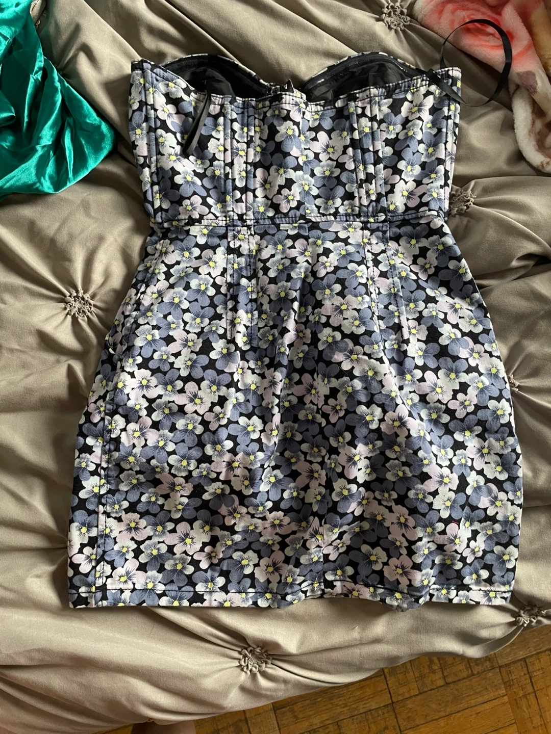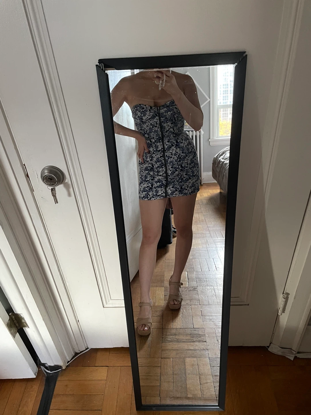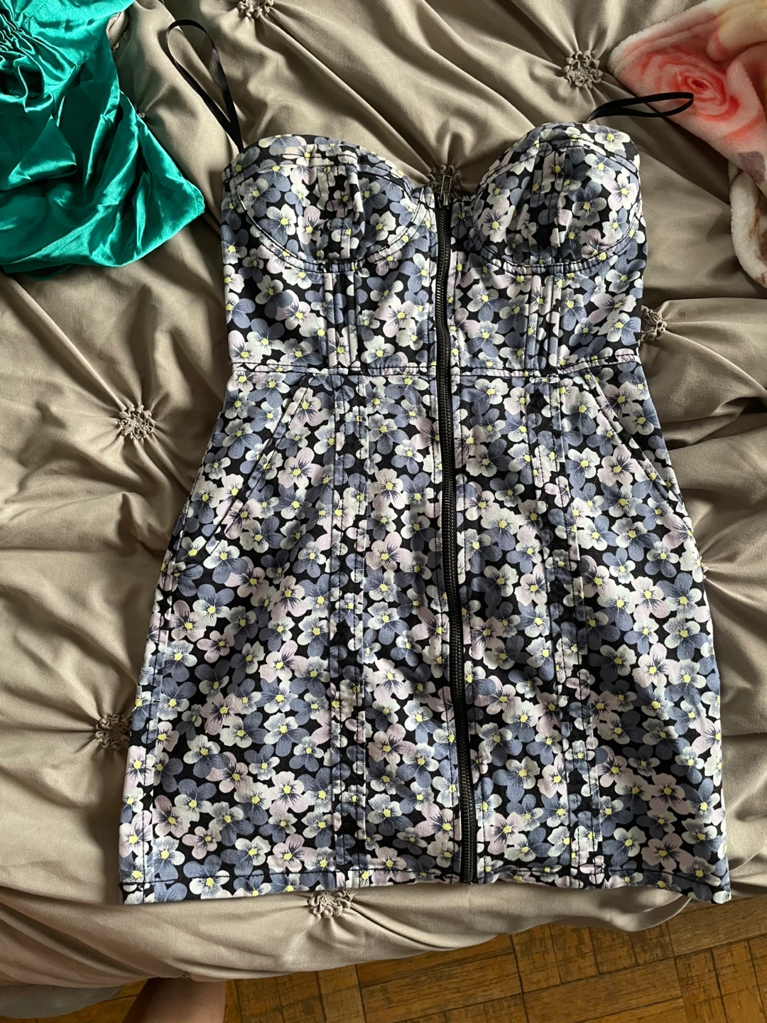 435Cute floral mini dress with a zipper down the front. Perfect for summer!