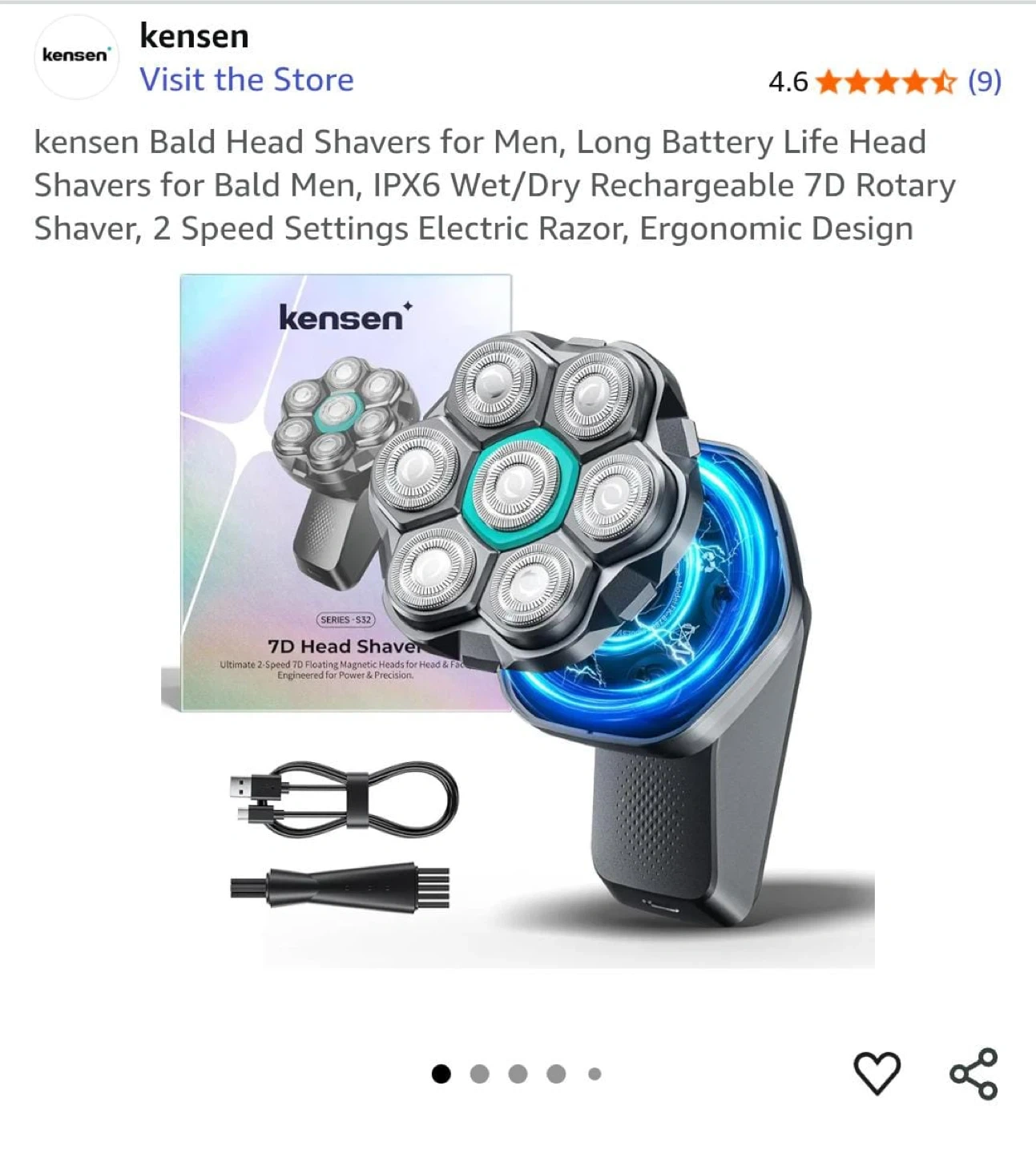 10New, in box. Price is firm. Please open the image to see the features. Selling a Kensen Bald Head Shaver for men. It features a long battery life and is IPX6 Wet/Dry rechargeable. It's a 7D rotary shaver with 2-speed settings and an ergonomic design. It also features an intelligent LCD display, two-speed adjustment, and a charging reminder. 100% Professional Waterproof.