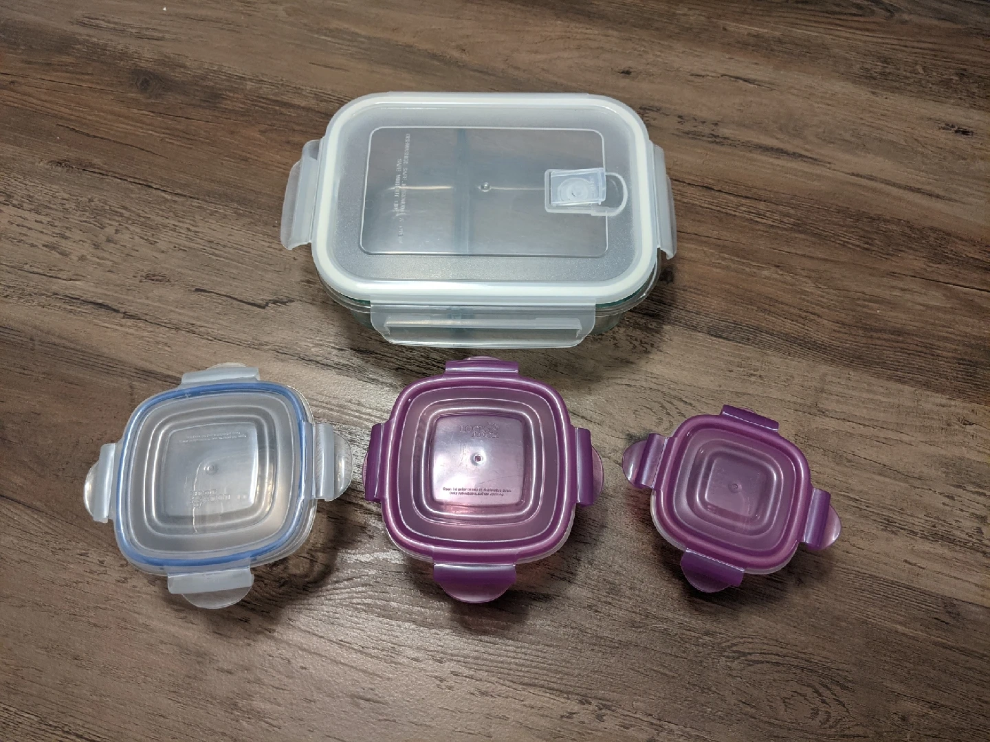 Organize your kitchen with this food container set, featuring a variety of sizes to meet all your storage needs. This used set is in good condition and ready to keep your food fresh and secure.