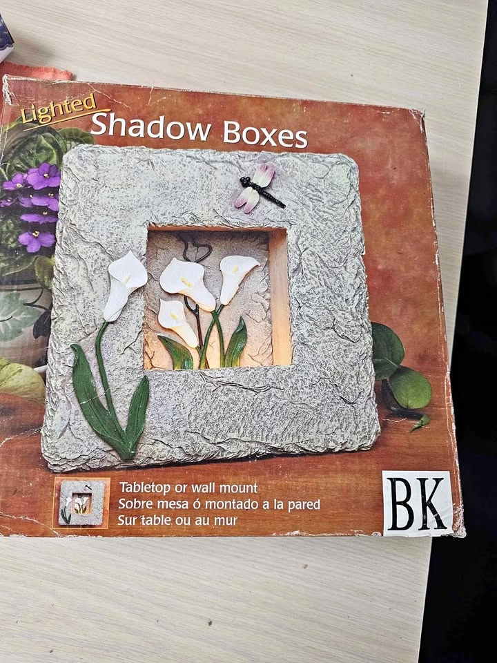 70Lighted Shadow Box Calla Lily and Dragonfly. Free standing or Wall Hanging 3D. Let me know if you're interested!