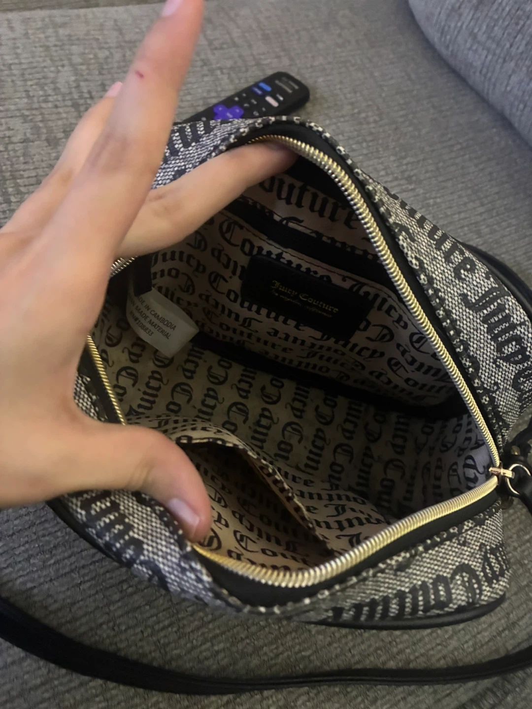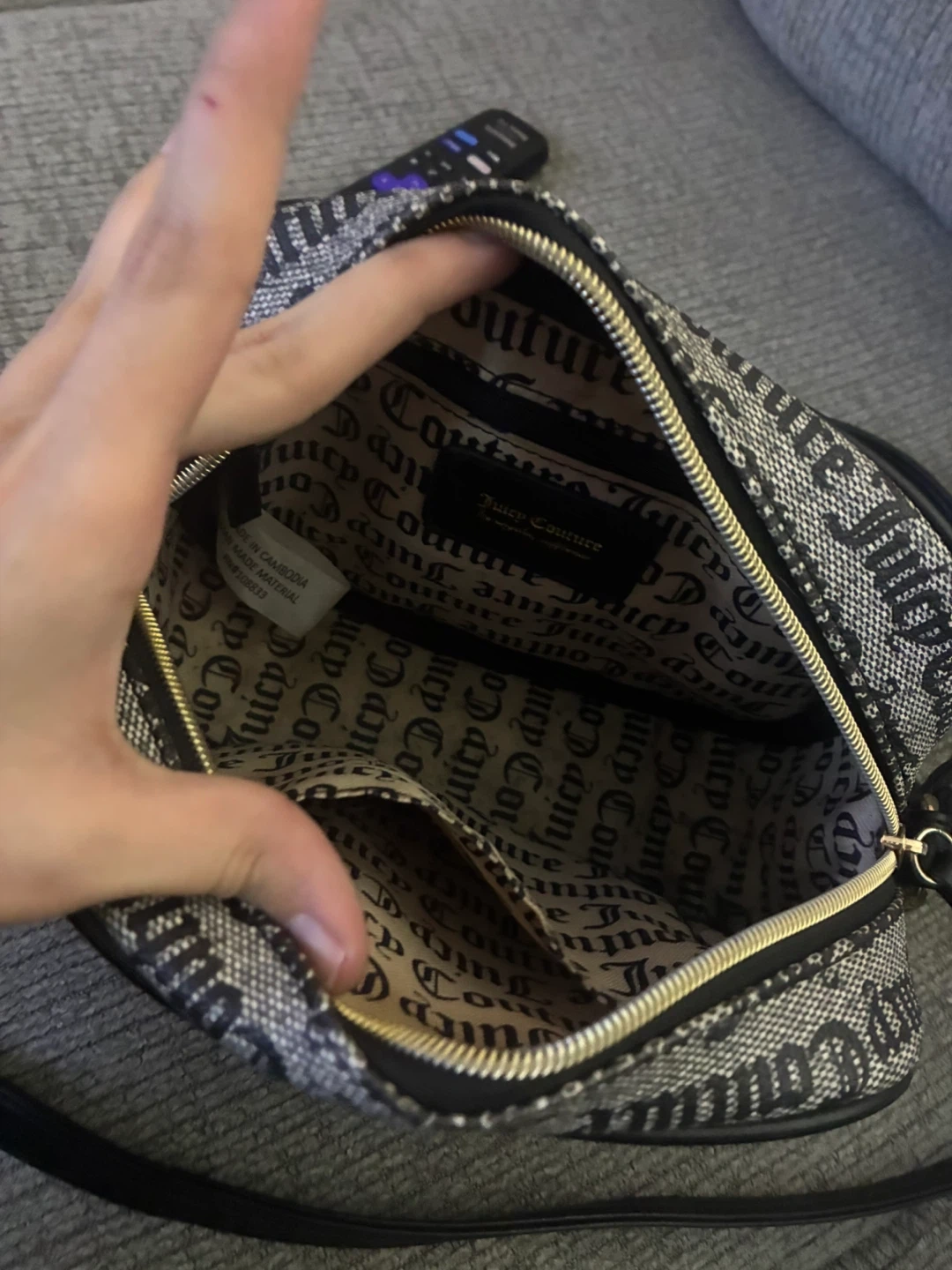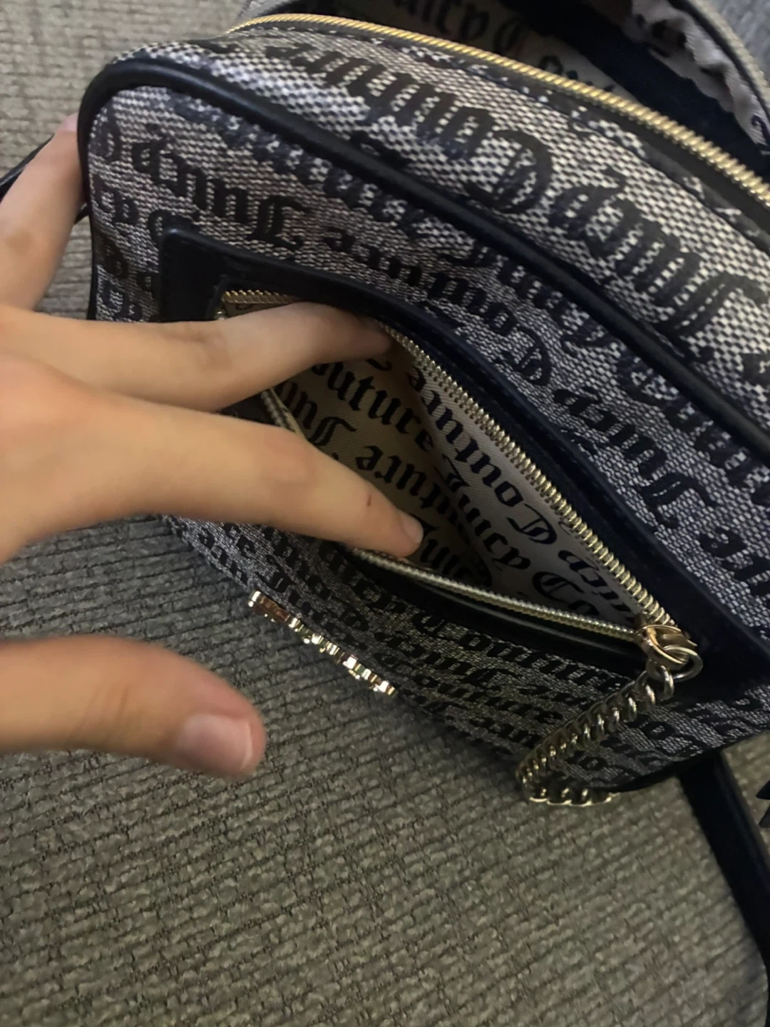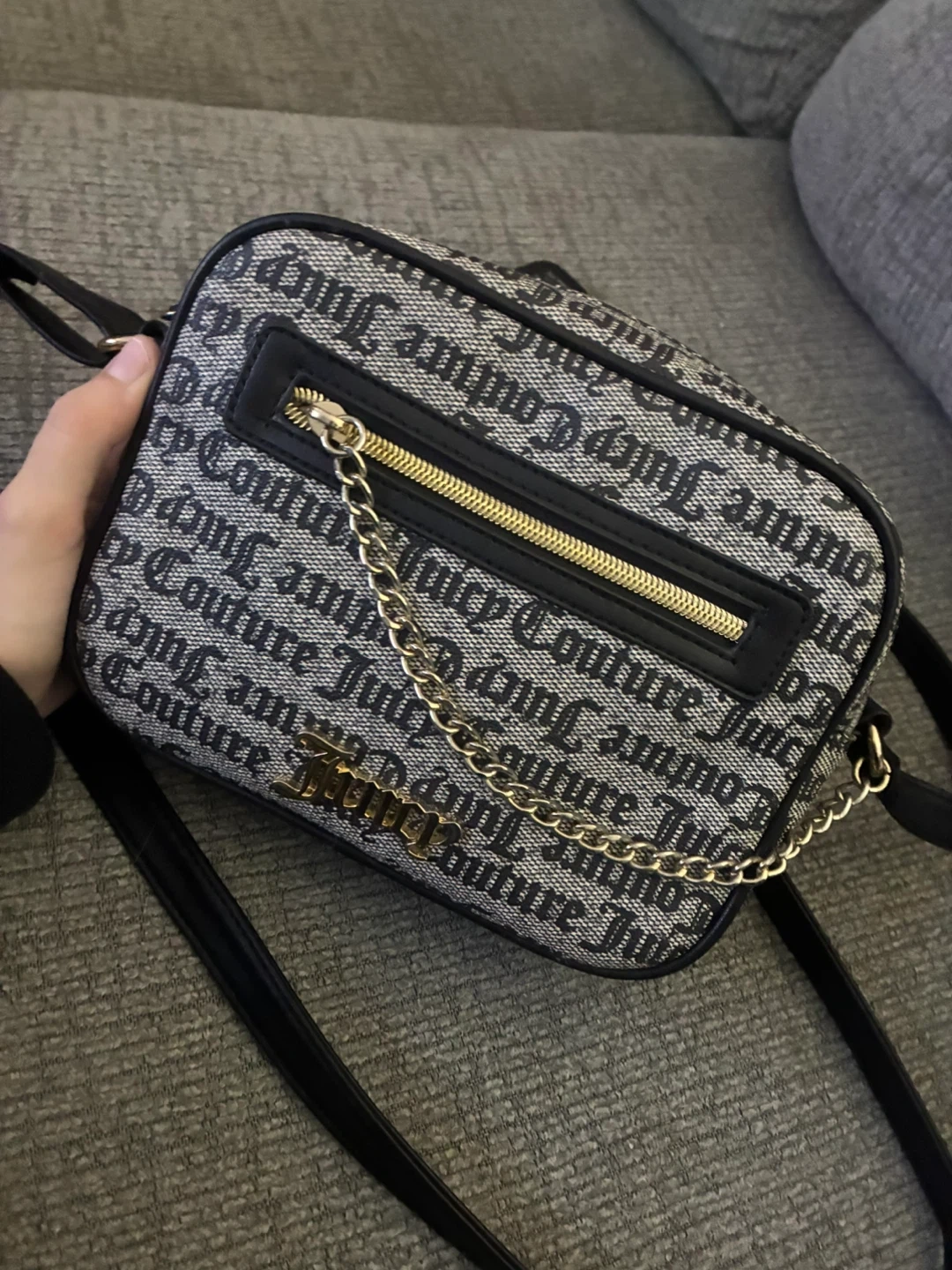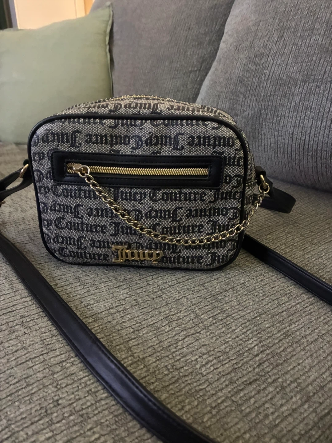 20This cute Juicy Couture crossbody bag is in great condition! It features a fun, all-over print and a gold chain detail. Perfect for adding a touch of style to any outfit!