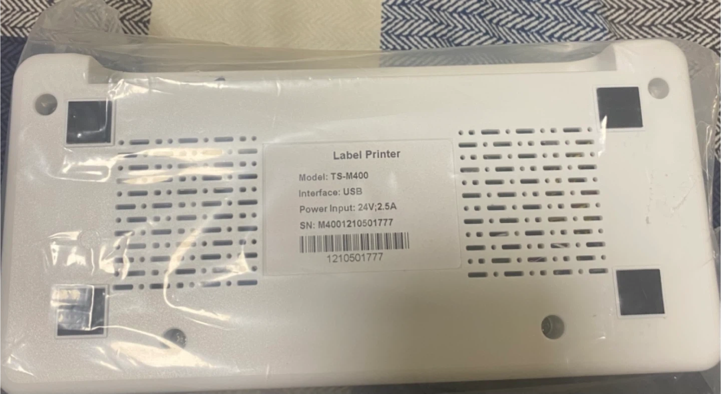 29I'm selling a brand new Label Printer Model TS-M400. It has a USB interface and requires a 24V, 2.5A power input. It comes with the box and a quick installation guide.