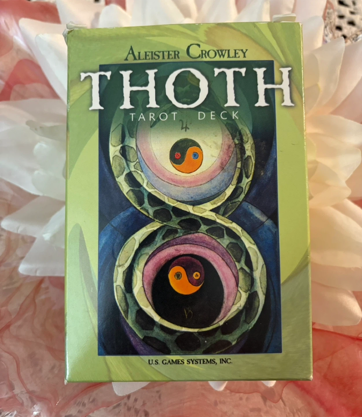 Based on my research of Karrot and other online marketplaces, a used Aleister Crowley Thoth Tarot Deck typically sells for between $30 and $60. Considering this deck's great condition, I've priced it competitively.