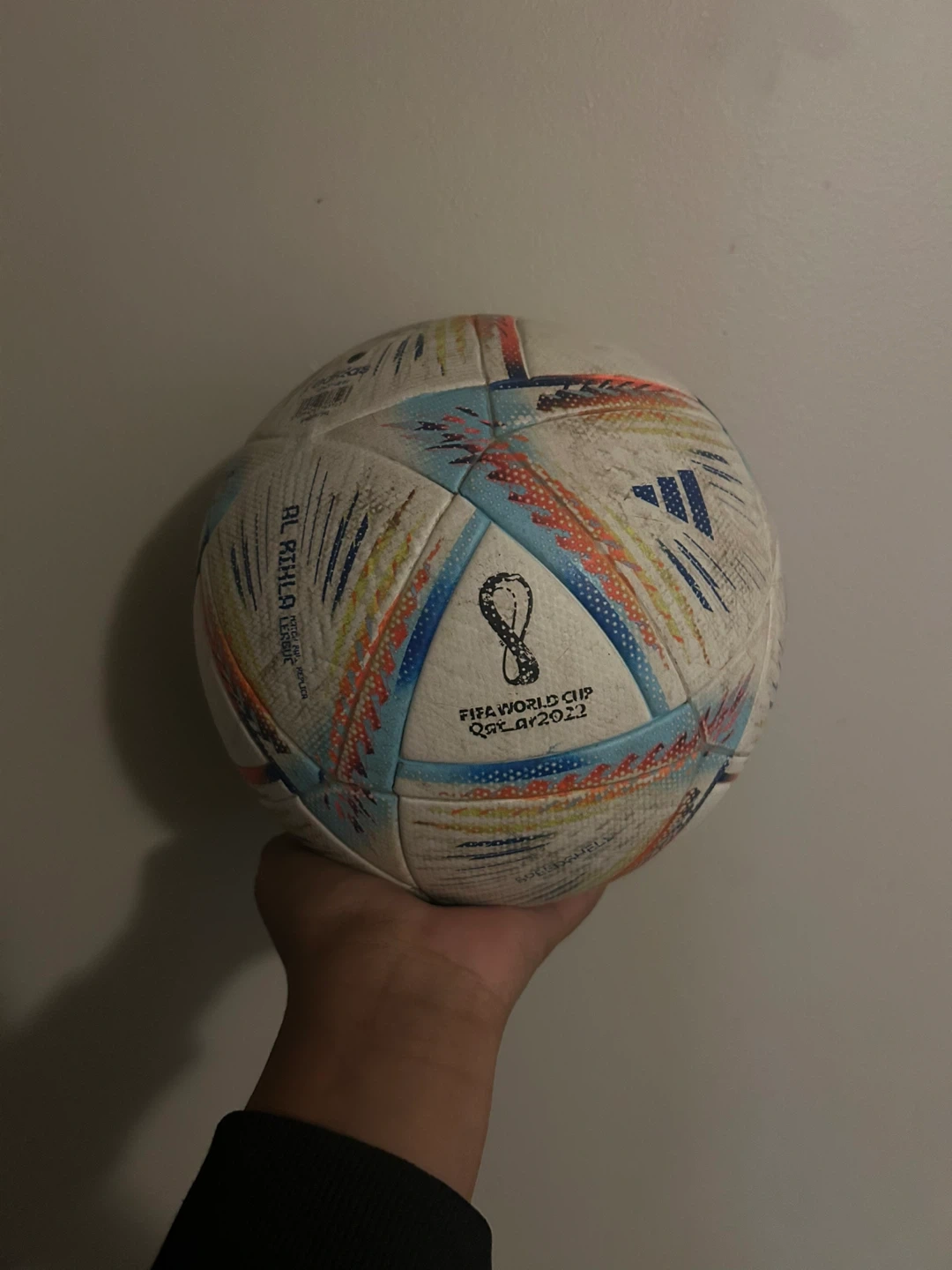 Selling an Adidas Al Rihla soccer ball used in the FIFA World Cup Qatar 2022! It's in good condition and ready for your next game or practice. Get ready to kick it like the pros!