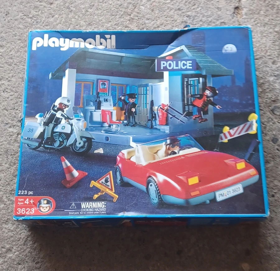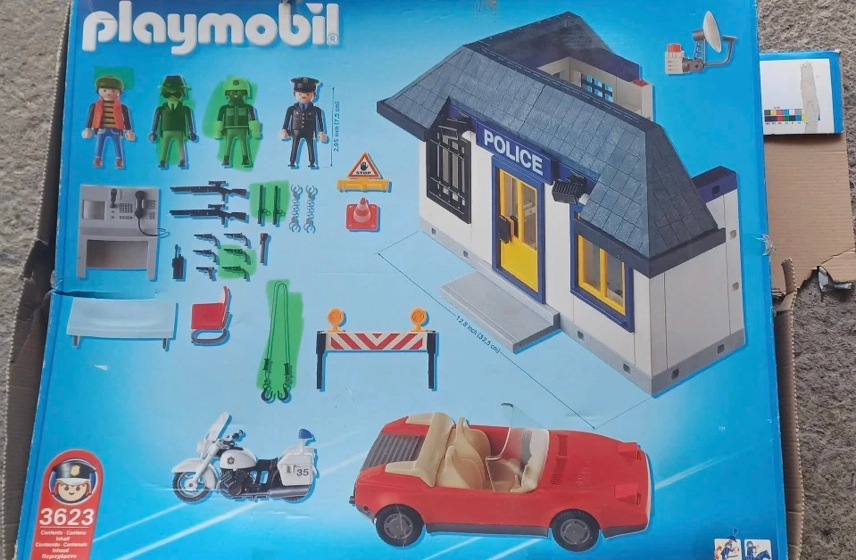 I'm offering a used Playmobil Police Station, set 3623, a classic playset for imaginative adventures! This set comes with the main police station building, a red car, and various accessories to create engaging scenarios. As a used item, it showcases some signs of play, but it is still in good condition for hours of fun.