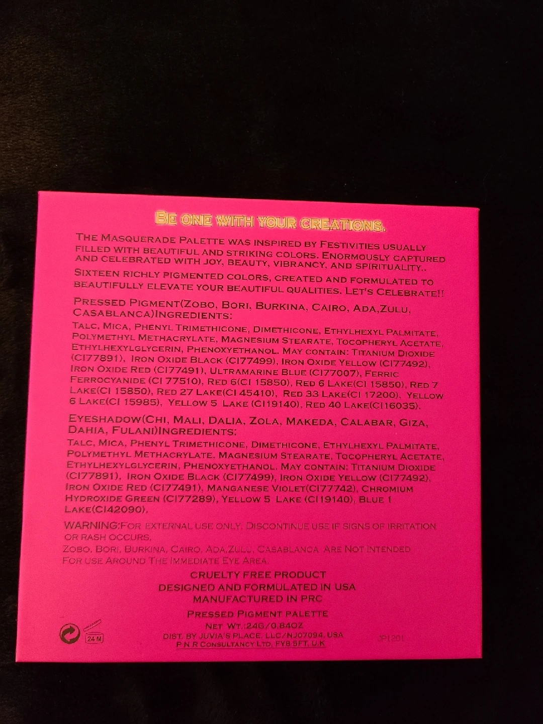 242Selling a Juvia's Place The Masquerade Mini eyeshadow palette. It features sixteen richly pigmented colours, created and formulated to beautifully elevate your beautiful qualities.