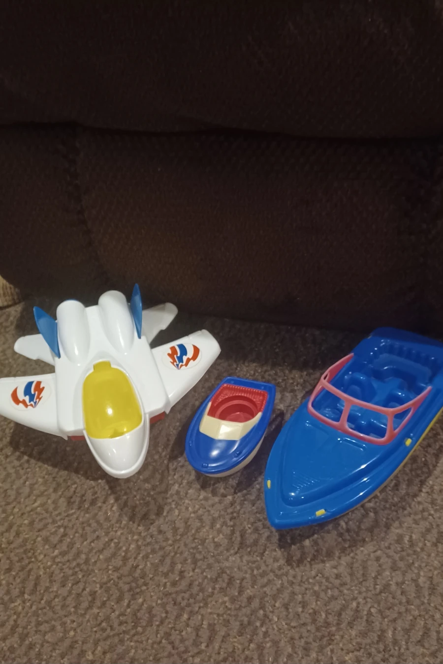 This collection features a toy jet and two boats, perfect for imaginative play.