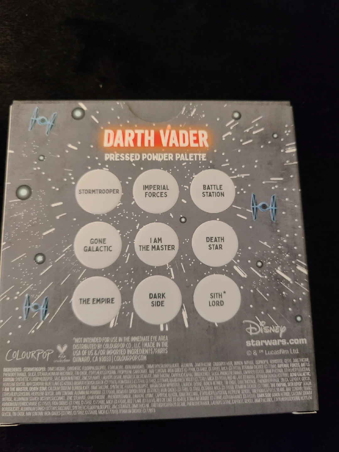 175Selling a ColourPop Star Wars Darth Vader pressed powder palette! The colours are super fun and pigmented. Perfect for any Star Wars fan!