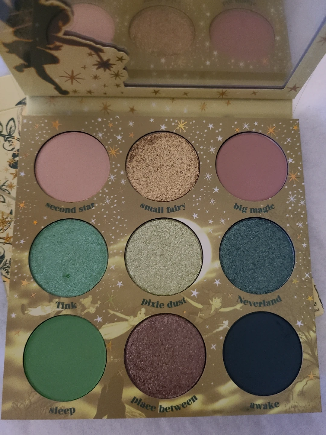 175Selling a ColourPop Disney Tinker Bell Sprinkle a Little Magic eyeshadow palette. The palette includes nine beautiful shades, each with a unique name inspired by the magical world of Tinker Bell! The colours are: - Second Star - Small Fairy - Big Magic - Tink - Pixie Dust - Neverland - Sleep - Place Between - Awake
