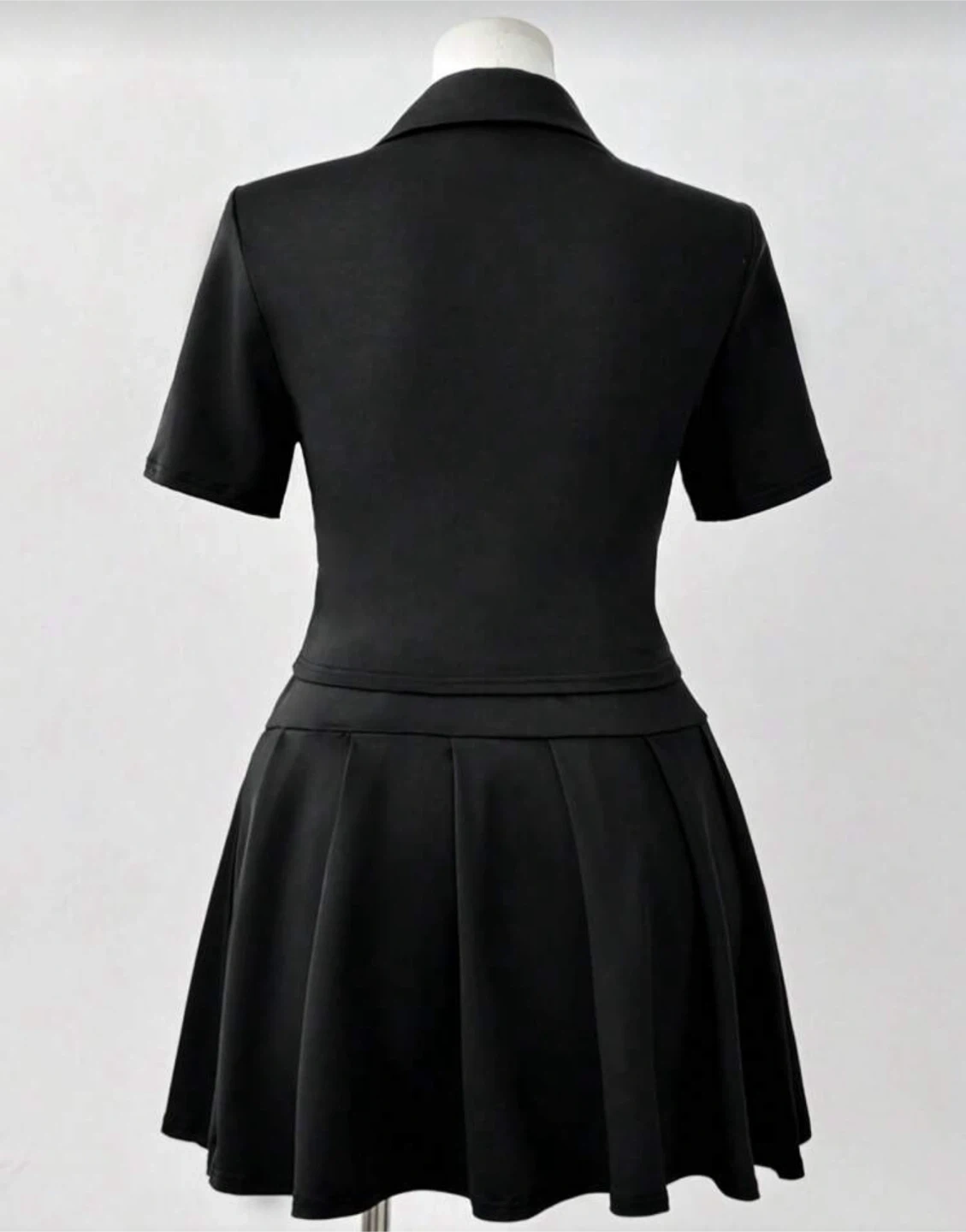 Selling a super cute black gothic style skirt set! The set includes a collared crop top with cross detailing and a matching pleated mini skirt. Perfect for adding a touch of edgy style to your wardrobe. (It doesn’t include the belt and the skirt is too big for me so I don’t wear it)