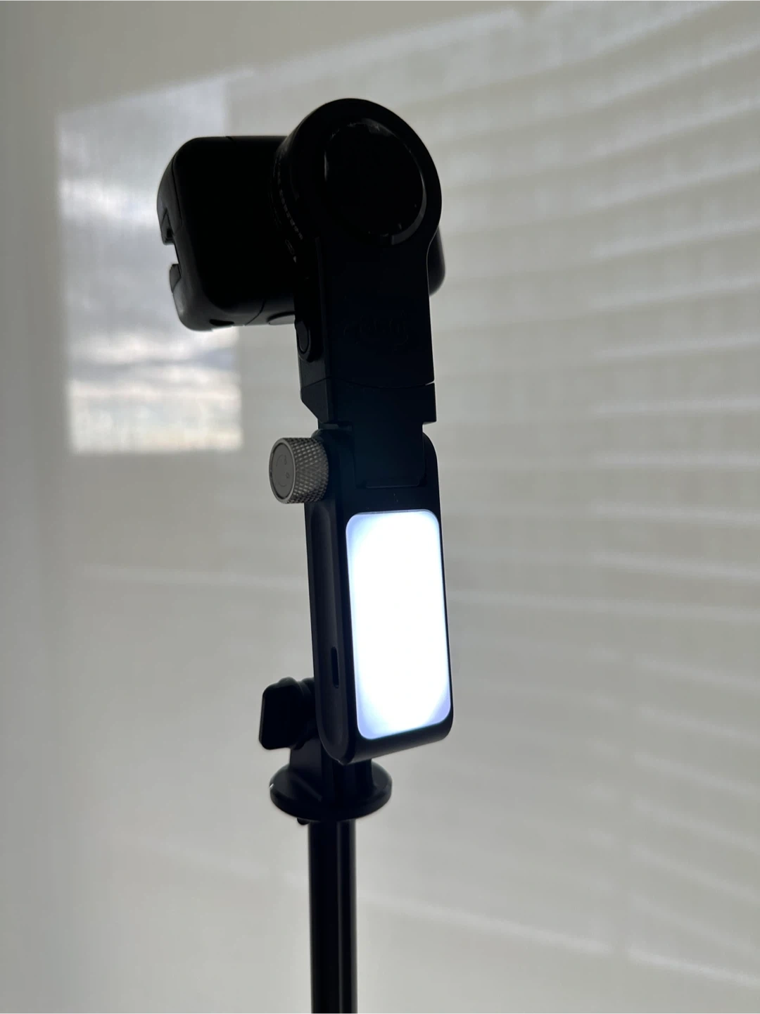 Extends to 1.8m, sturdy, built in AI face tracking function, built in LED light with warm, white, daylight modes, approximately 33cm when fully shortened, comes with remote for controlling the camera shutter, usb C charging.