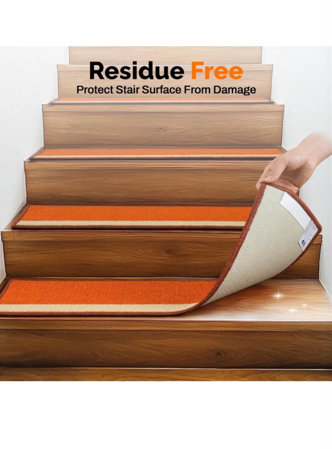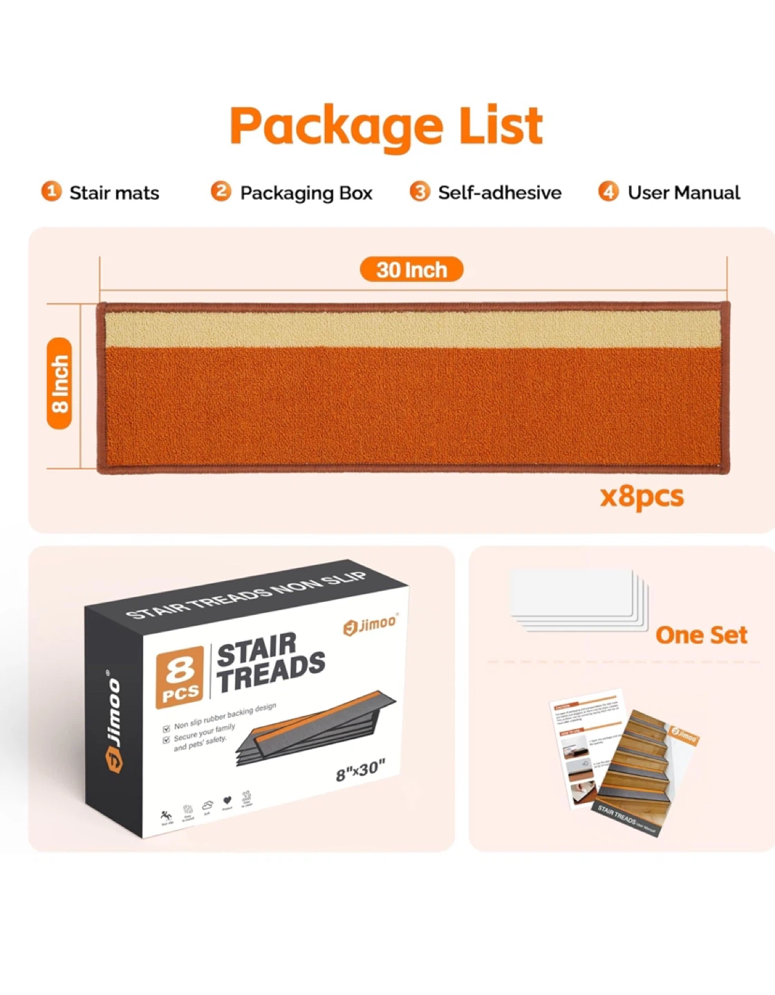Jimoo Stair Treads - 4pcs - Orange/Beige - 8" x 30"
