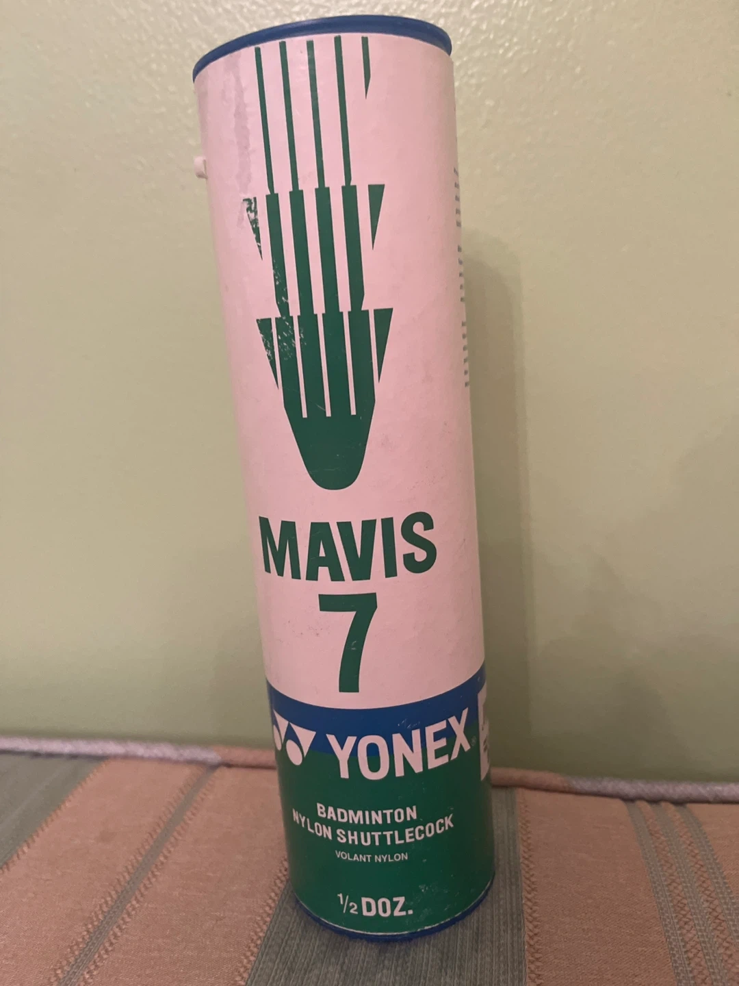 Selling a tube of Yonex Mavis 7 nylon shuttlecocks. This tube contains 1/2 dozen shuttlecocks, perfect for badminton enthusiasts!