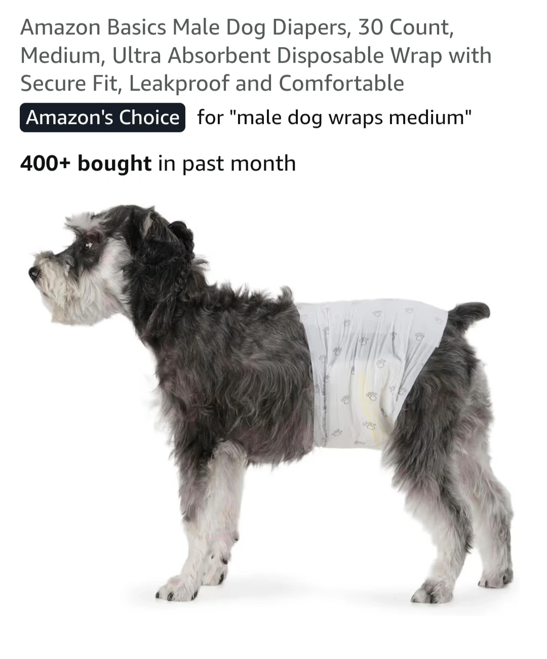 Amazon Basics Male Dog Diapers, 30 Count, Medium, Ultra Absorbent Disposable Wrap with Secure Fit, Leakproof and Comfortable