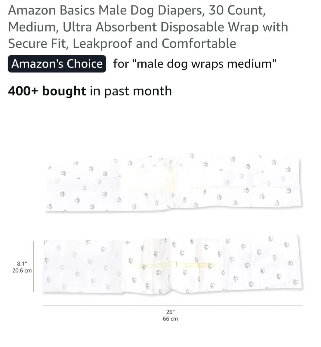 Amazon Basics Male Dog Diapers, 30 + 23 Diapers