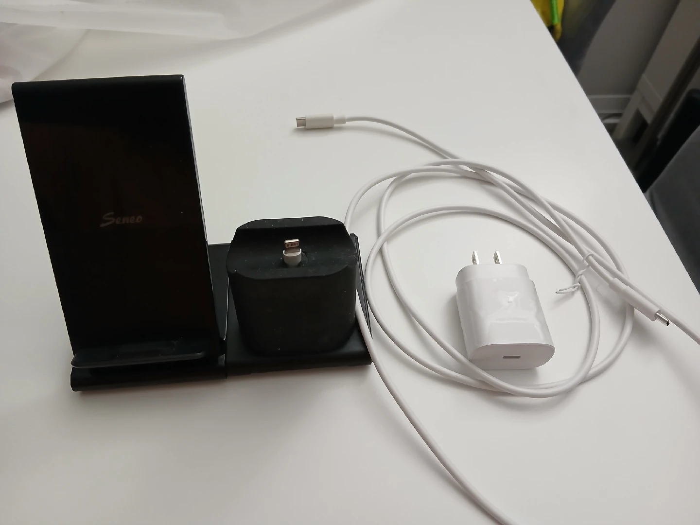 Selling a Seneo PA191B 3-in-1 wireless charging stand! It's perfect for charging your phone, Apple Watch, and AirPods all at once. It supports 5V/2A, 9V/2A input and 5W/7.5W/10W output. The charging stand also includes the charger and cables