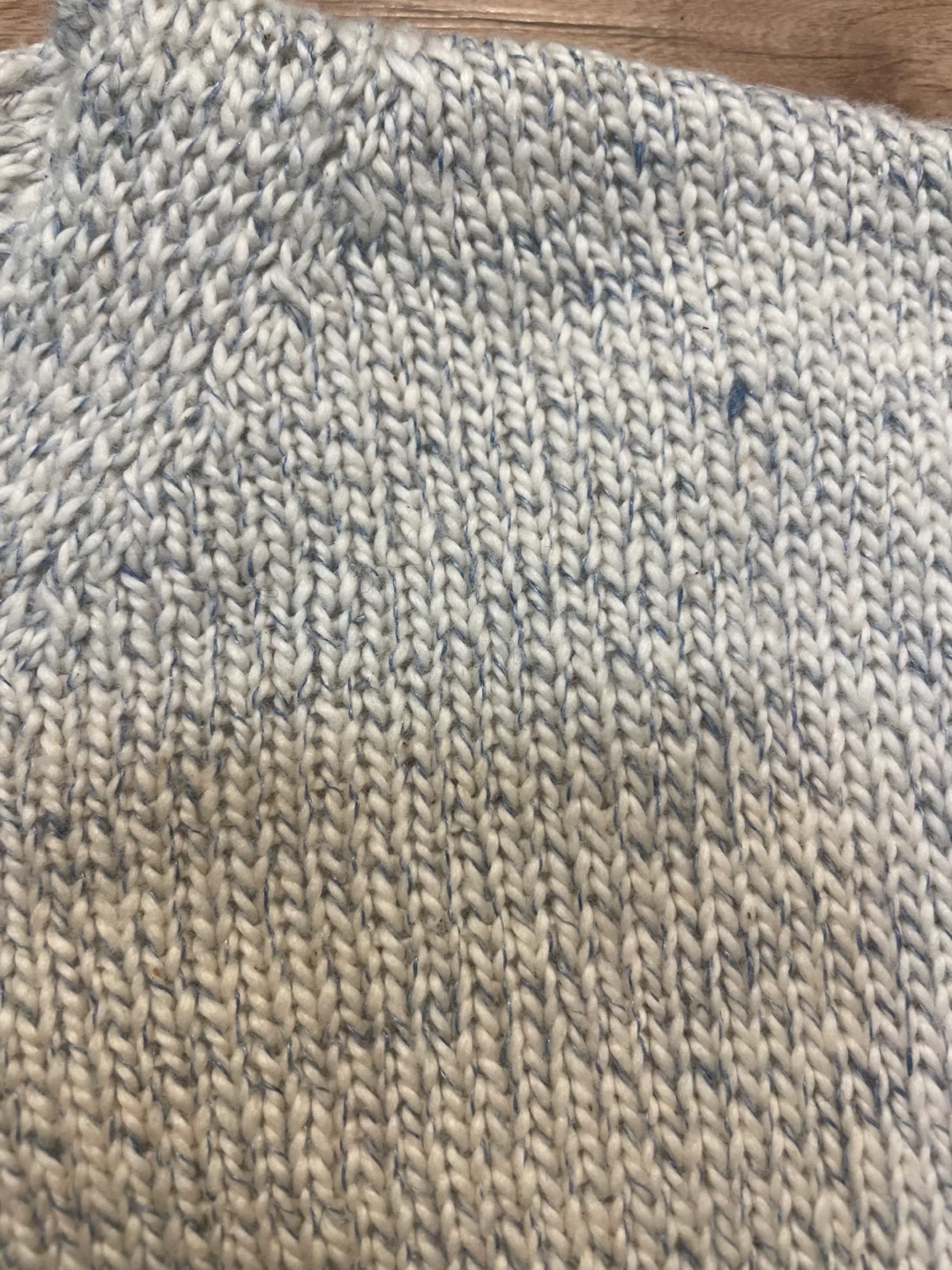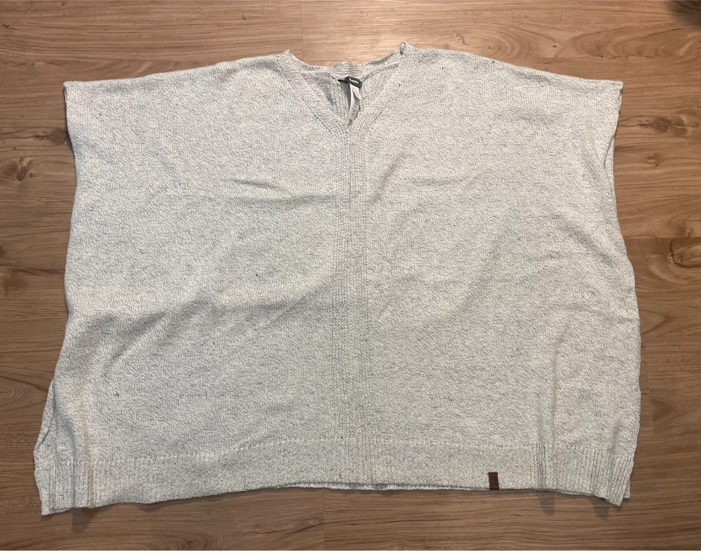 Cozy Roots Canada knit poncho in a lovely light blue and white marled colour! It's a super comfy and stylish piece to throw on, perfect for layering! The size is O/S, which fits most.