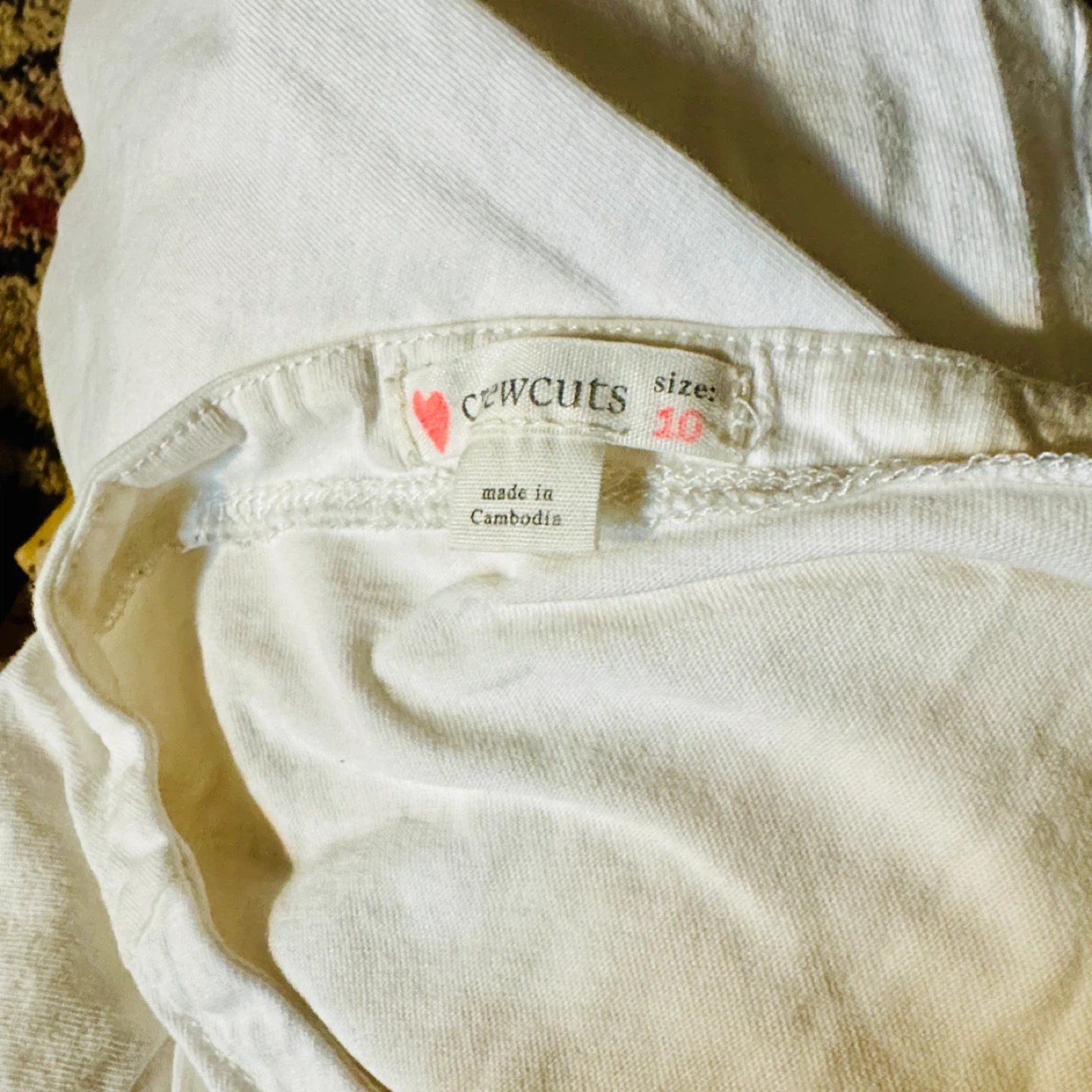 Selling a crewcuts long sleeve shirt in size 10. It's off- white and made of 100% cotton. The shirt has a cute velvet heart patch stitched on the front! In very good condition