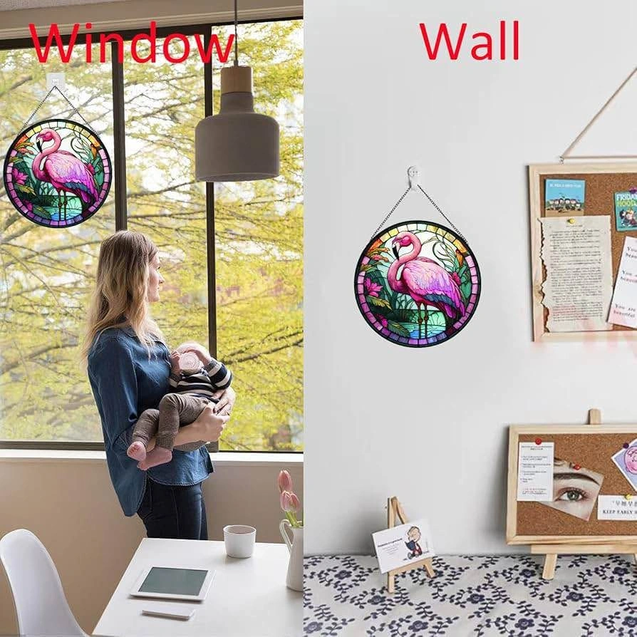 484New Flamingo Stained Glass Window Hanging Flamingo Wall Decor for Kitchen Living Room,Hangings Wall Art Decor Size : 20cm/7.87' No holds, price is firm.