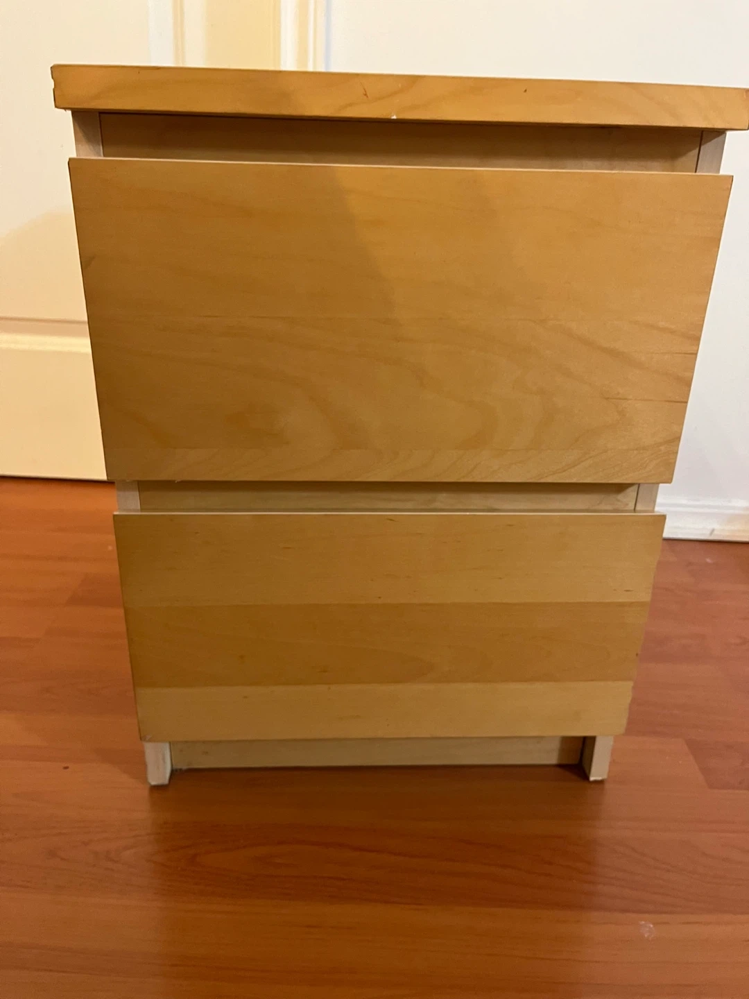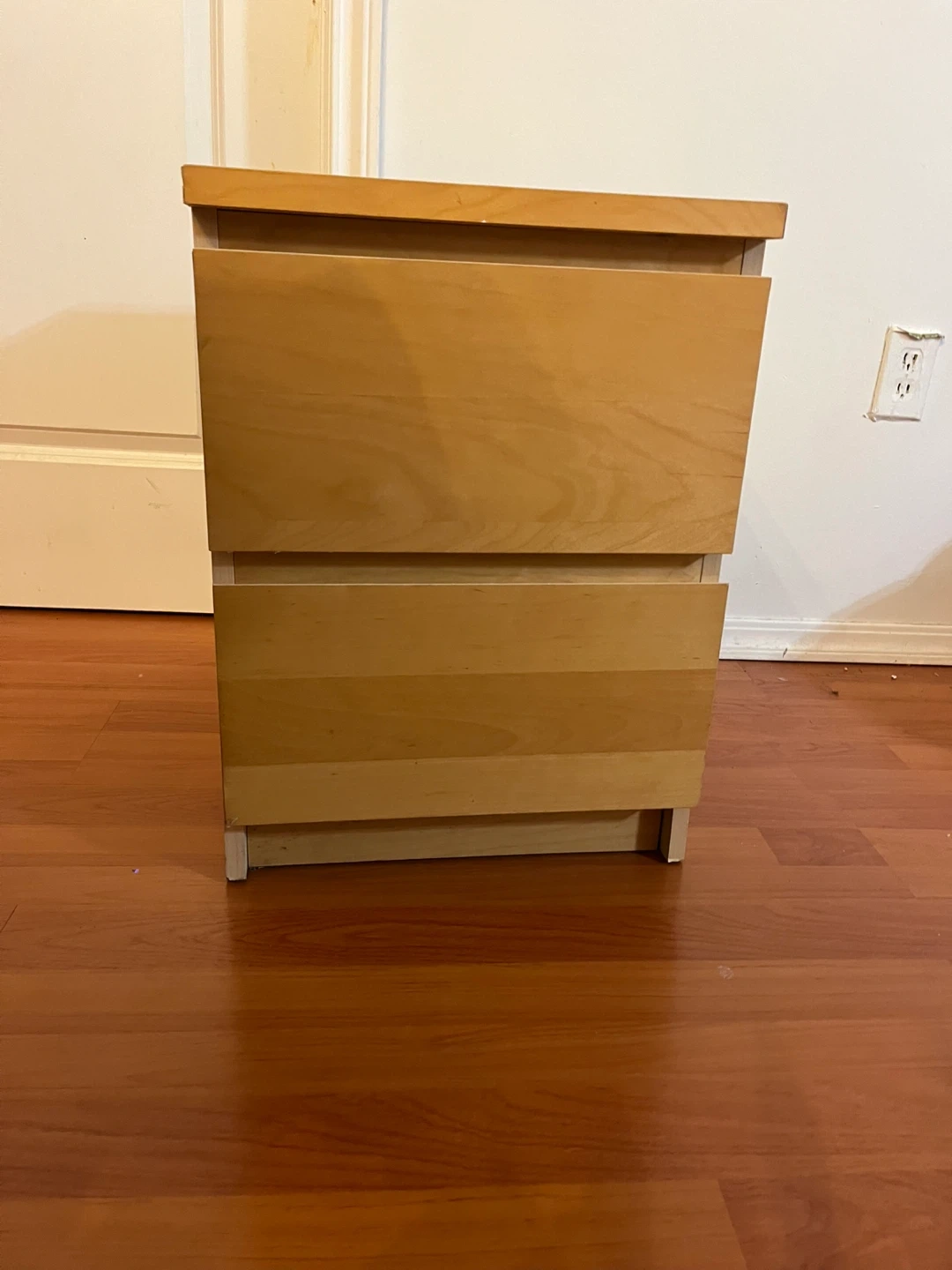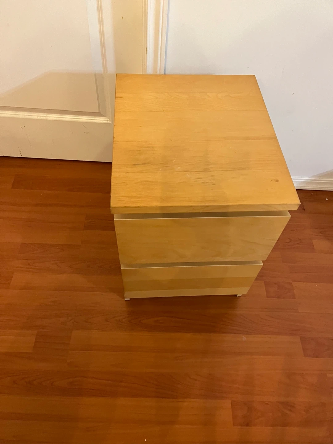 38Selling a wooden nightstand with two drawers. It's in good condition and perfect for a bedside table or small storage unit. The light wood finish adds a nice touch to any room. It's a sturdy piece of furniture that's ready for a new home!