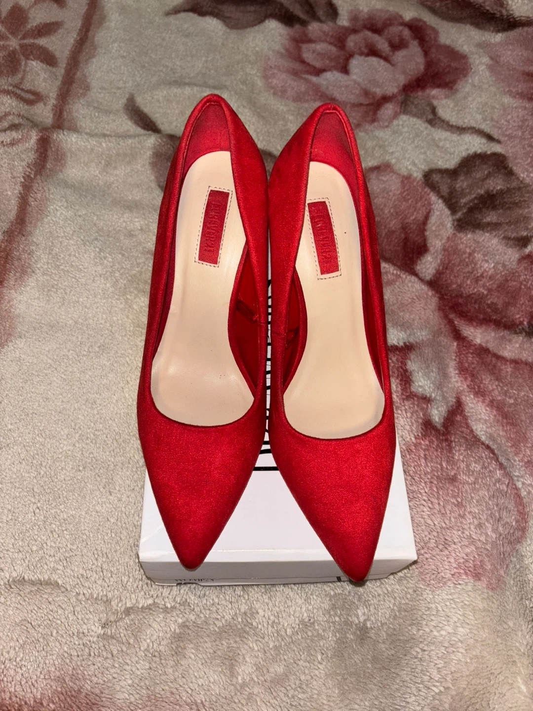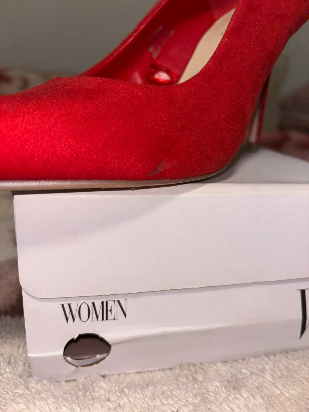Selling a pair of red Forever 21 heels. They are a US size 7.5. They have some wear on one side of the shoe but are otherwise in great condition!