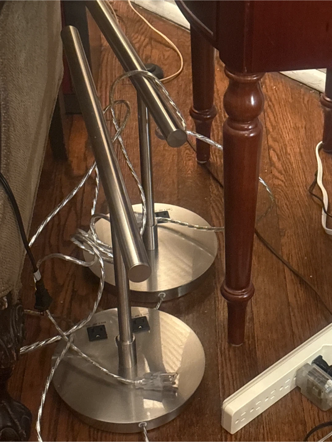 1000+Selling a pair of brushed Chrome LED desk lamps / features a sleek design and comes with convenient built-in plug ports. Perfect for adding a touch of elegance to your home Parkside Drive south of Bloor and keele station area