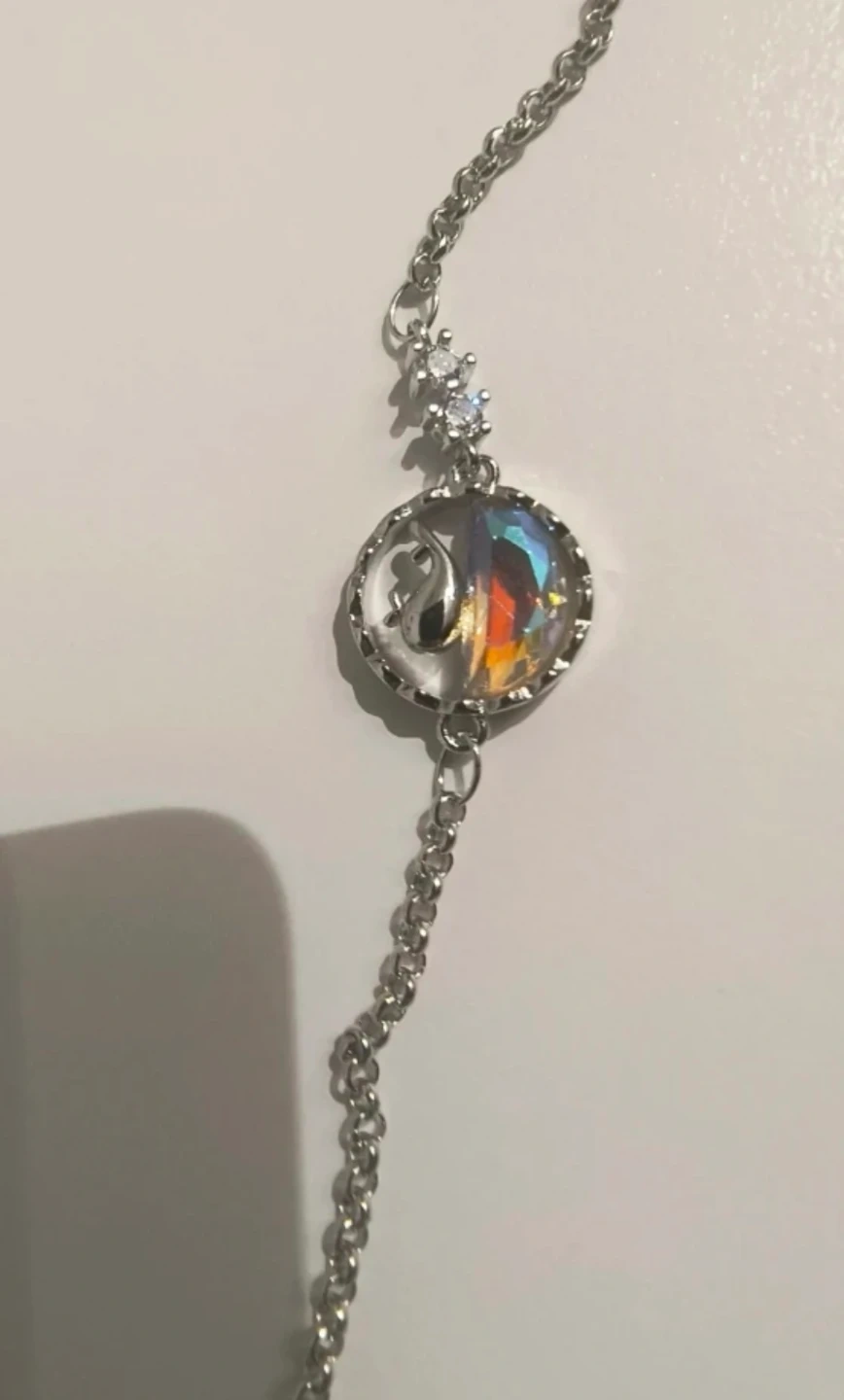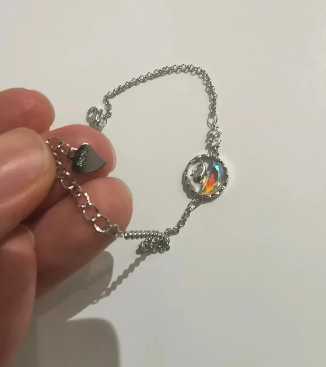 163Silver bracelet with a whale pendant and having stones on side. Size is adjustable