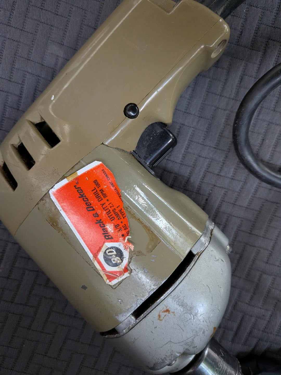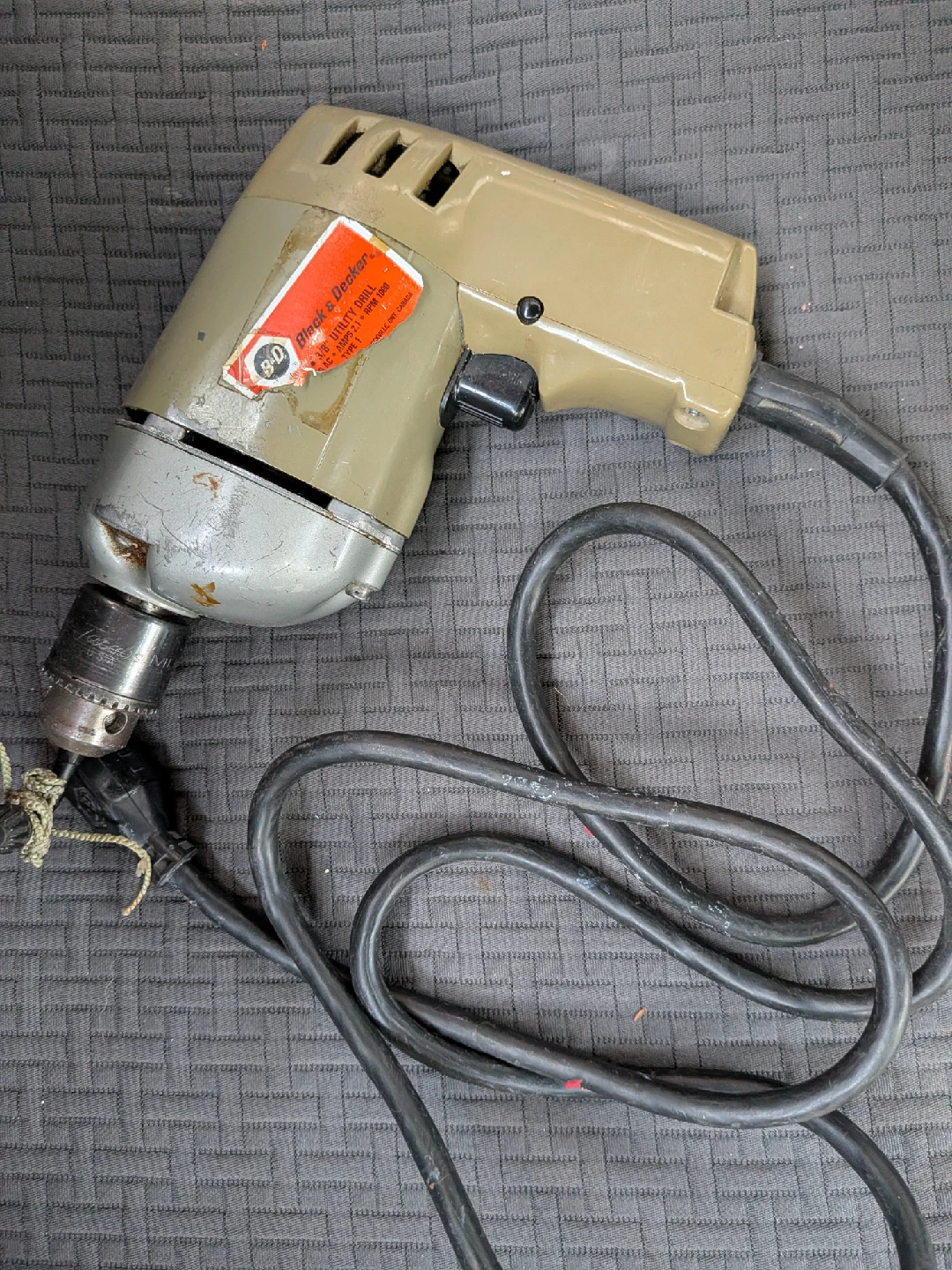 Selling a Black & Decker VINTAGE 3/8 Utility Drill. It shows some signs of wear, but it's still functional. Perfect for small projects around the house
