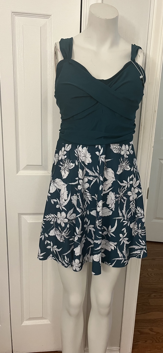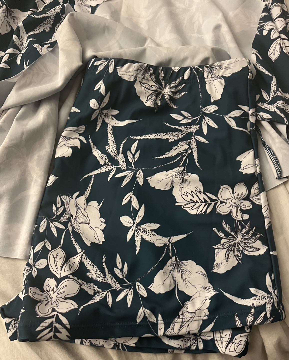 Beautiful green floral two-piece set — includes a swim dress and matching shorts. Perfect for the beach or pool! Never worn, excellent quality, and flattering fit.