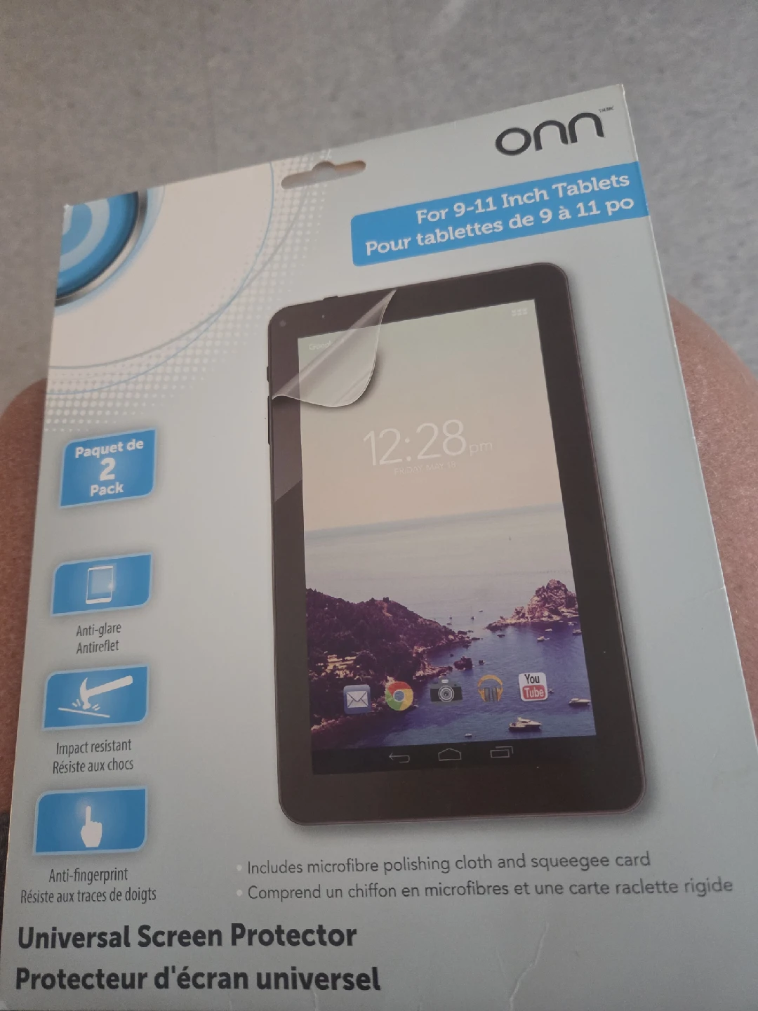 I'm selling a brand new, universal screen protector for 9-11 inch tablets by Onn for $8.00