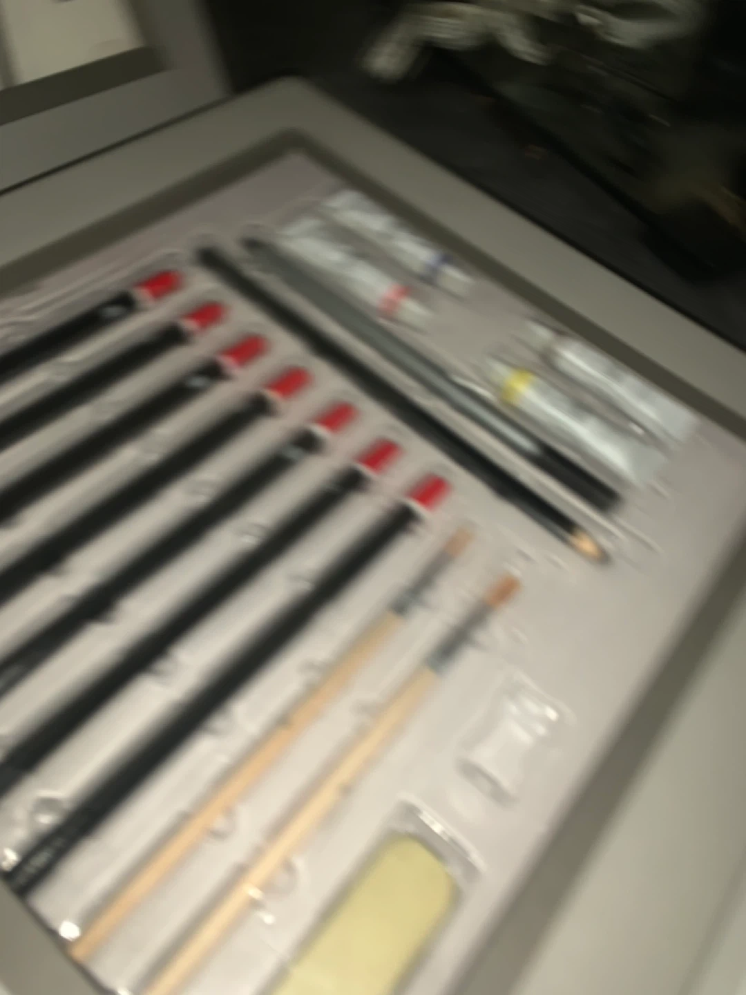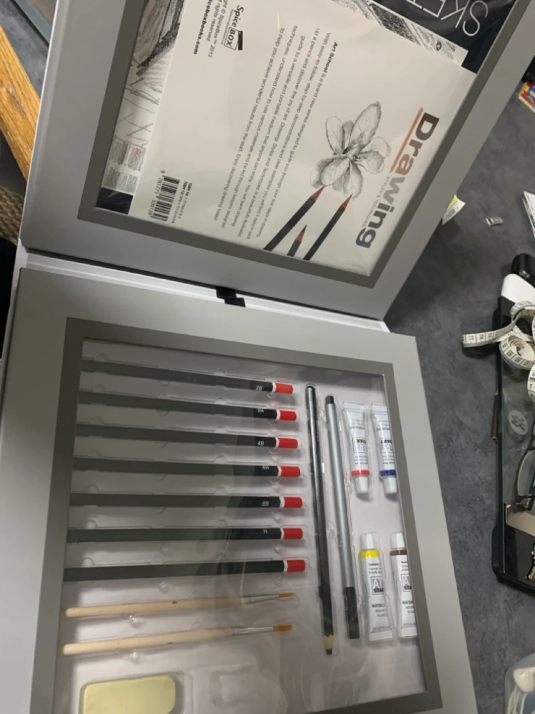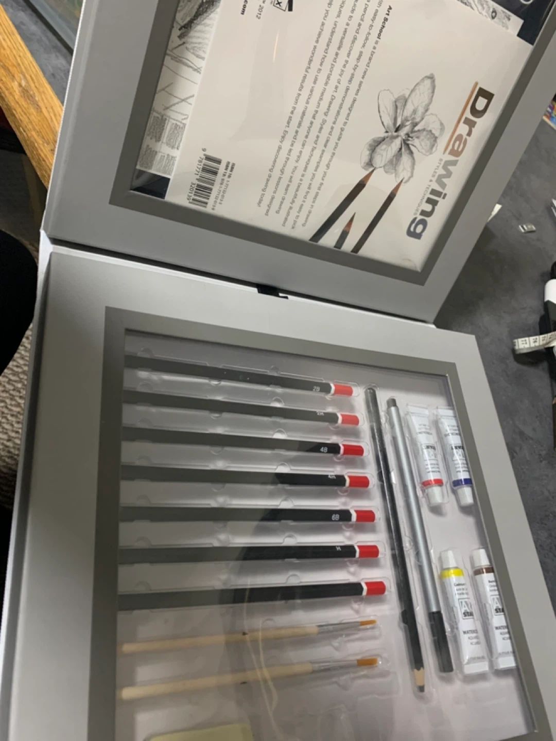 38I'm selling a set of art supplies that includes Elmer's Tempera Paint and a drawing art set. The Elmer's Tempera Paint set includes 6 bottles of non-toxic, washable paint. The drawing art set includes pencils, paint, and brushes, all neatly organized in a case. All new or like new condition . Great value