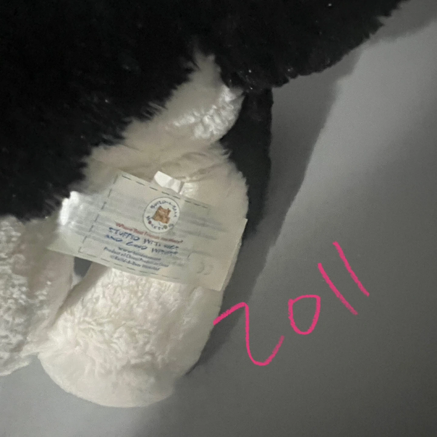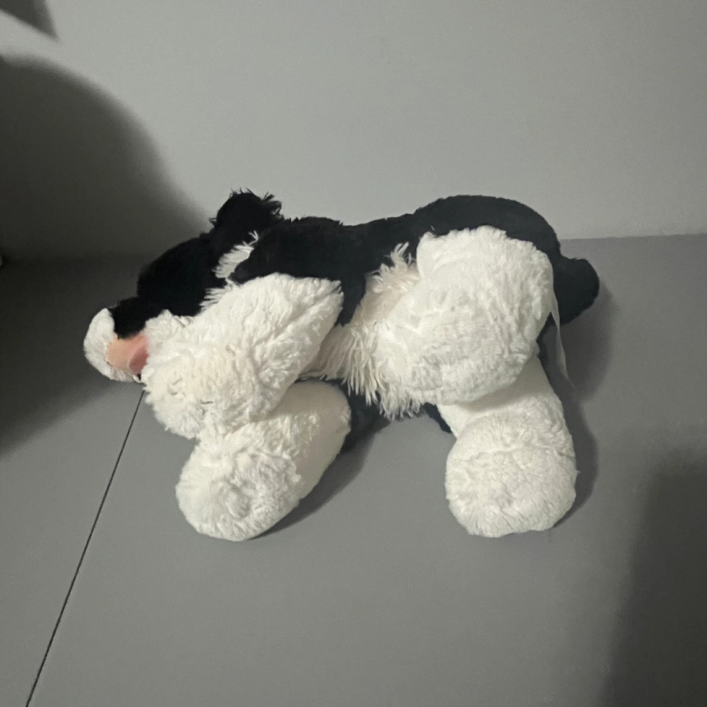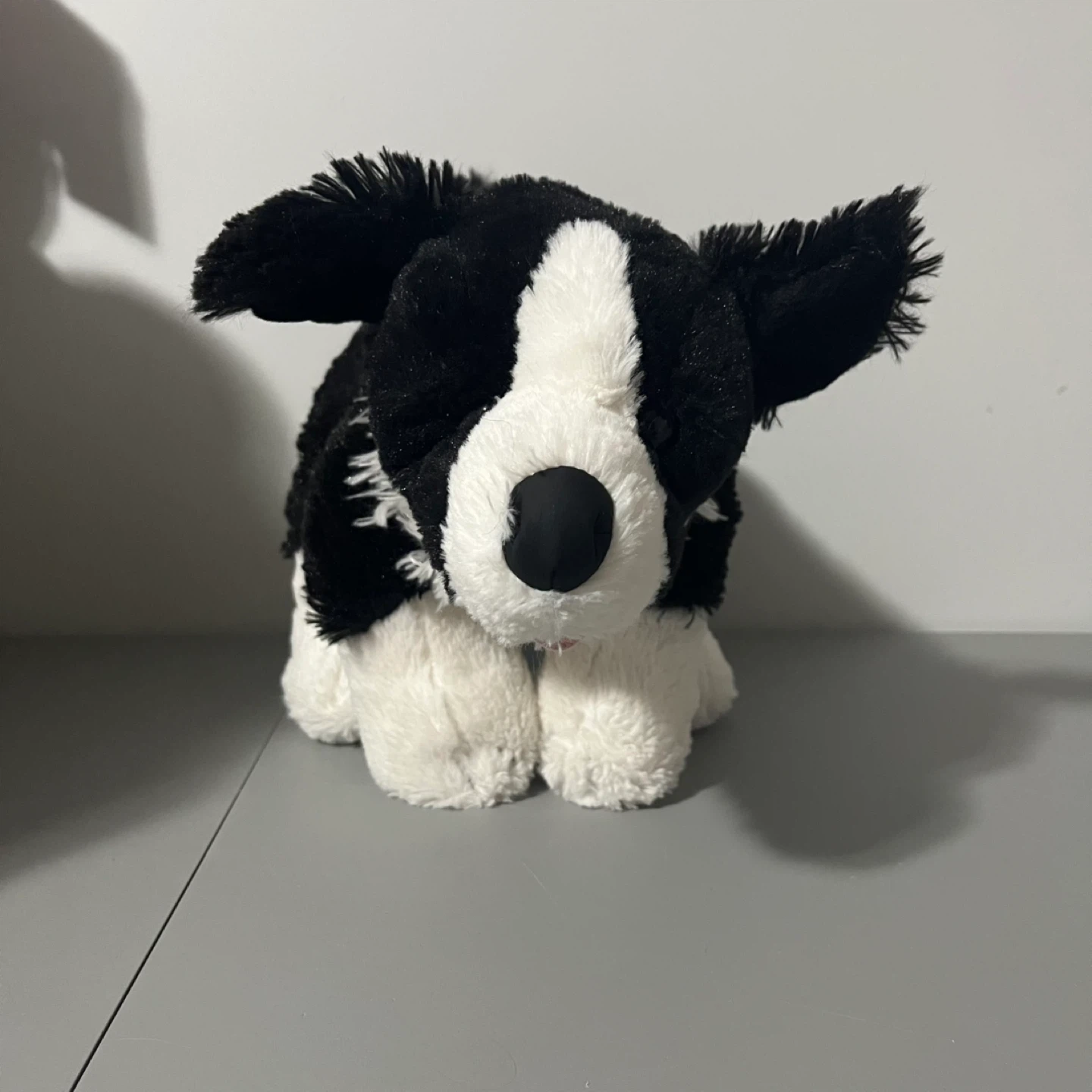 Selling a cute black and white plush dog toy! It's in great condition and ready for a new home. Perfect for kids or dog lovers