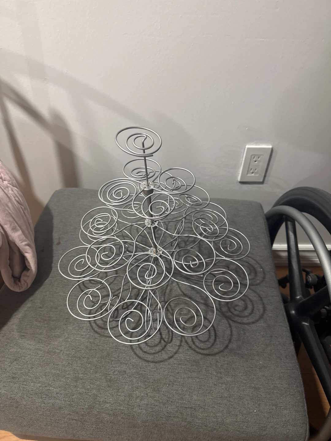 Selling a silver metal cupcake stand! It's perfect for displaying cupcakes or other treats at parties or events. It's in great condition and ready for a new home