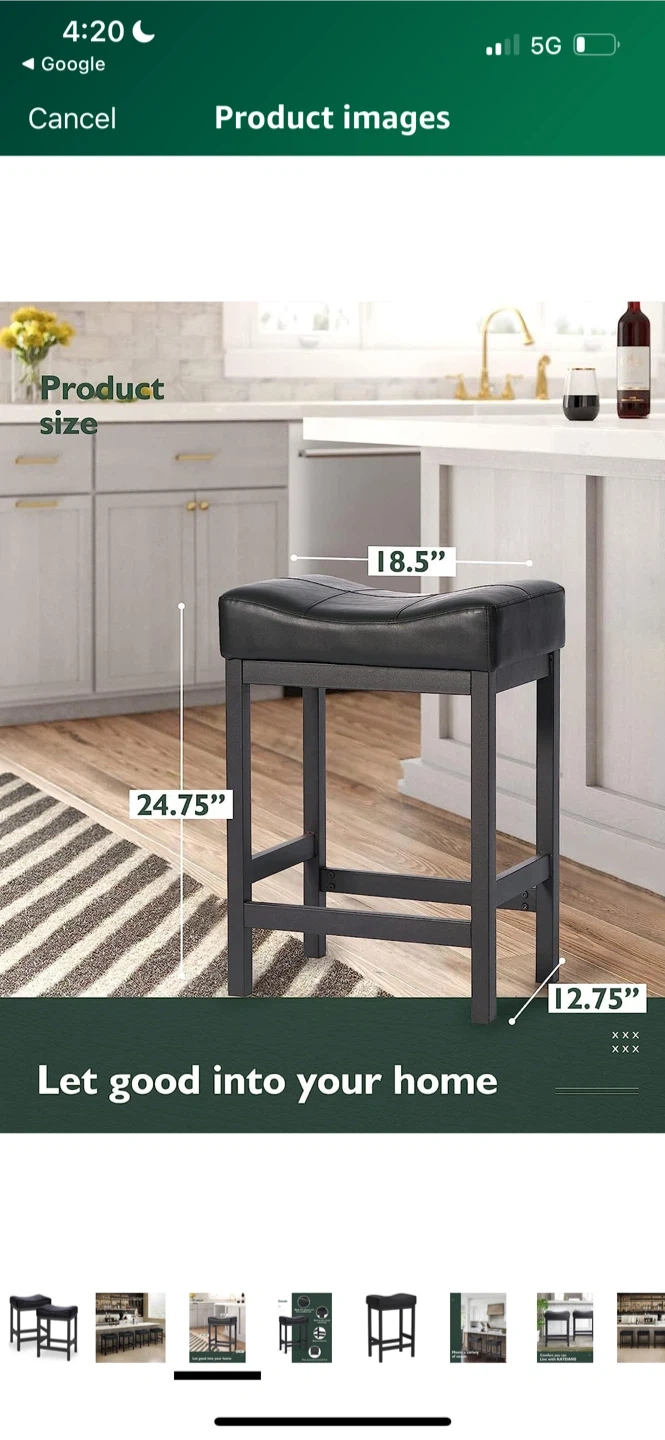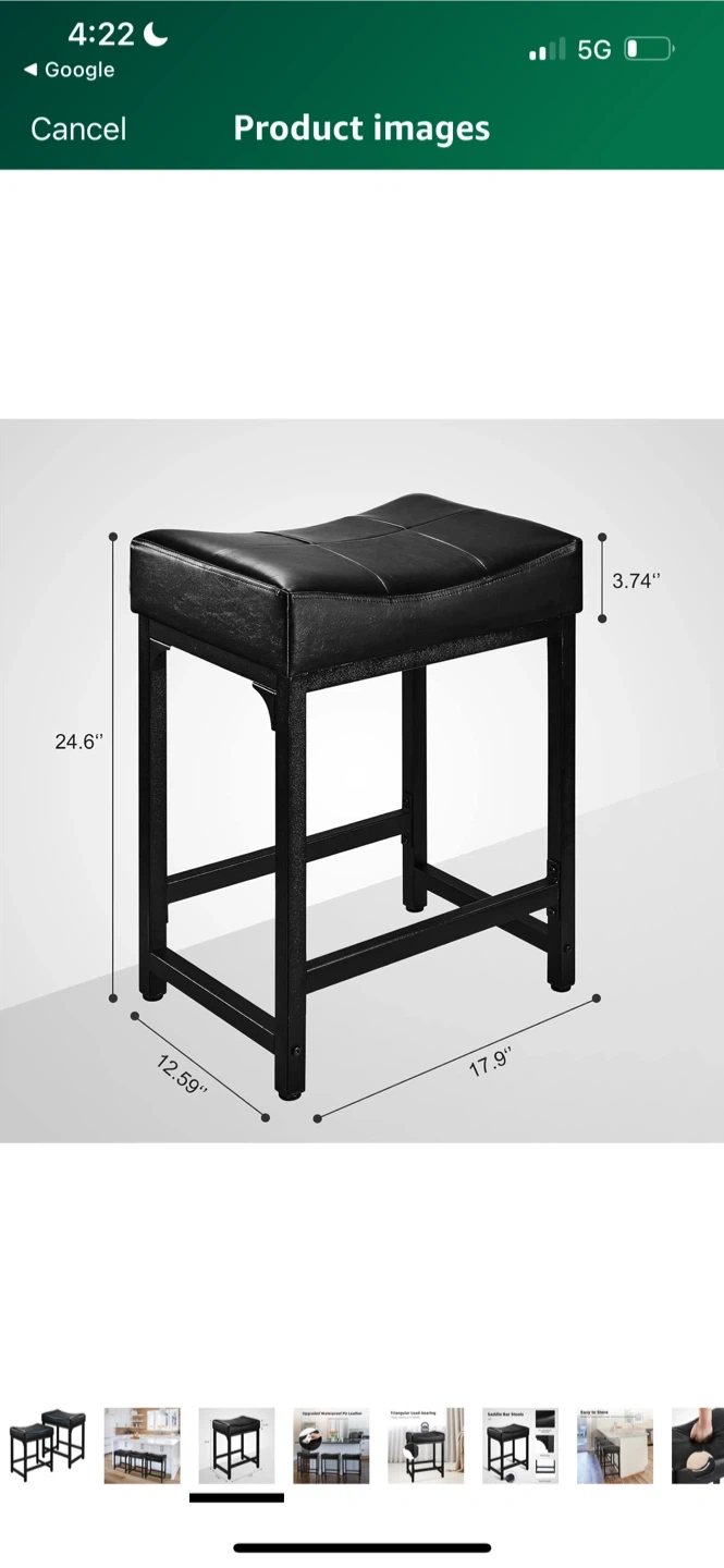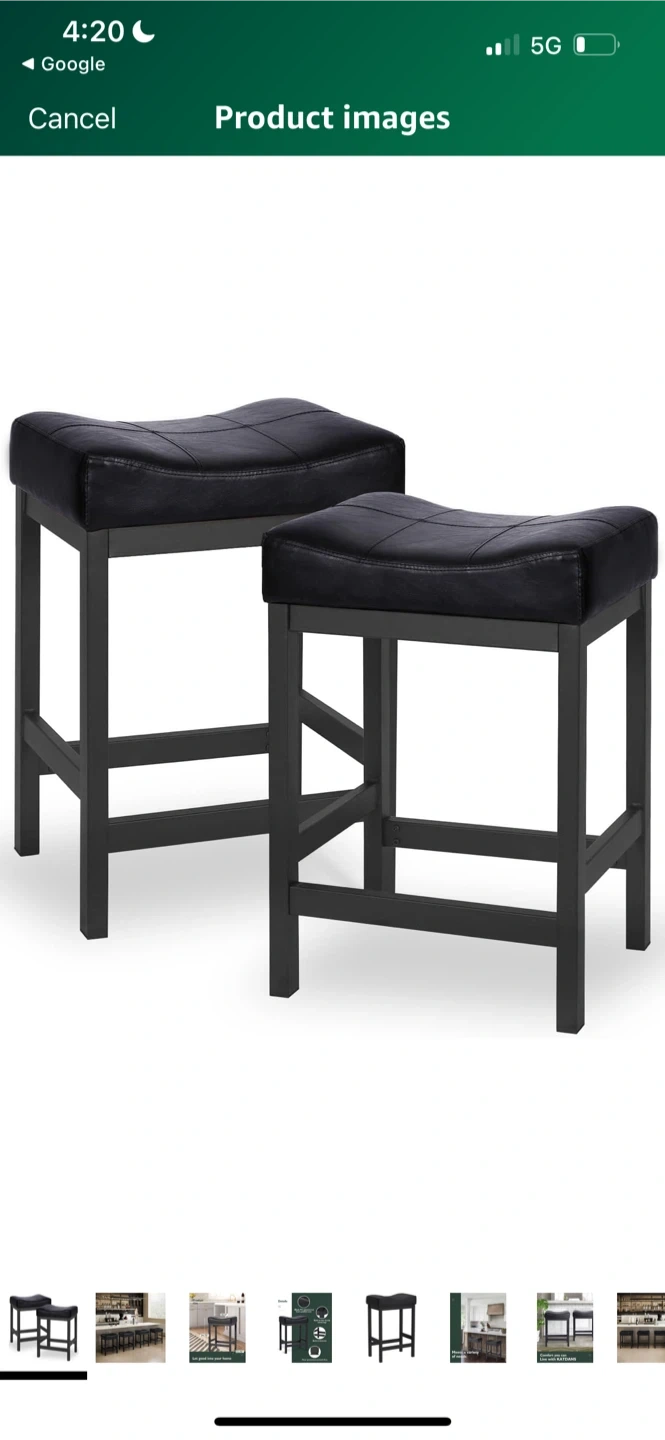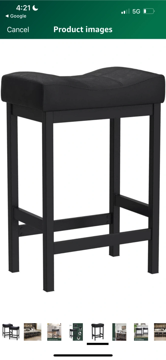 137Wayfare Price $84 Each New Kat Dan’s Bar Stools Set of 2, Counter Height Stools 24 Inch Saddle Stools, PU Leather $49 each This stool features a black PU upholstered foam padded seat and sturdy metal legs. It also has a built-in footrest and floor protectors to prevent scratches. The stool measures 24.75" in height, 18.5" in width, and 12.75" in depth