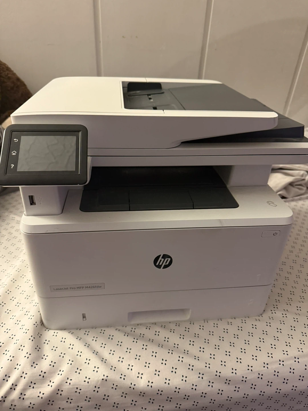 Selling an HP LaserJet Pro MFP M426fdw printer. It's in brand new working condition and ready for a new home. Perfect for home or small office use!