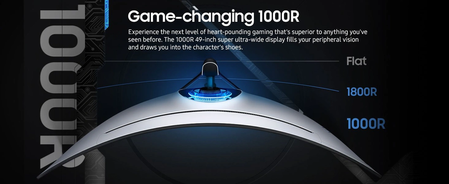 -Make sure to tighten down the cable on both the monitor and the computer end while setup SAMSUNG'S LARGEST 1000R GAMING MONITOR: Get your head in the game with the 49 inch Odyssey G9, which matches the curve of the human eye, for maximum immersion and minimal eye strain. With the screen space of two 27 Inch panels, you can truly take command on the battlefield