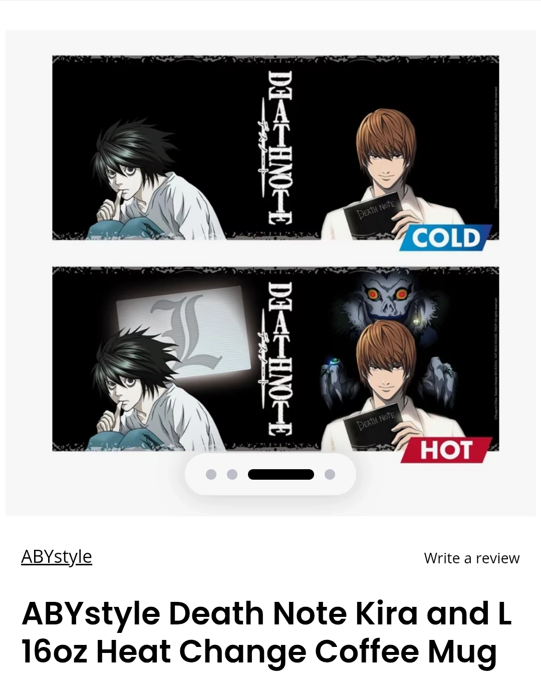 Selling a Death Note coffee mug by ABYstyle! It features characters from the anime and manga series. The mug is in great condition and ready for a new home