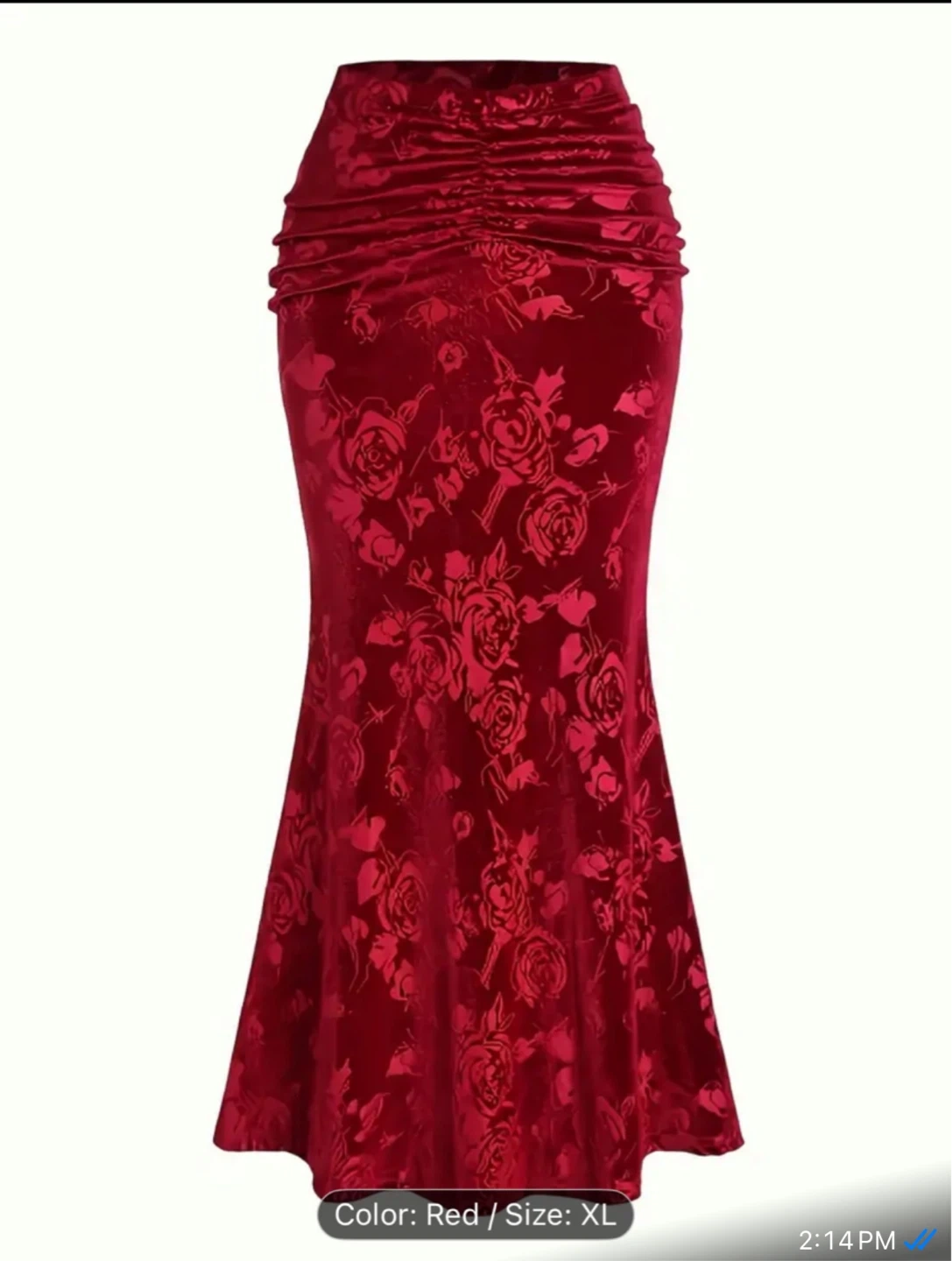 Selling a beautiful red velvet skirt with a floral pattern! The size is XL, Perfect for adding a touch of elegance to your wardrobe