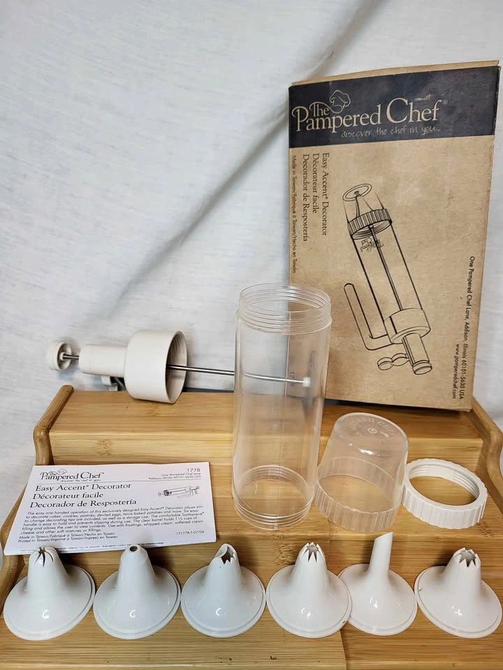 Buy & SellCOMPLETE! Pampered Chef easy Accent DecoratorCOMPLETE! Pampered Chef easy Accent Decorator$20Pick Up In Oshawa Rossland and StevensonWHERE TO MEETCheck LocationView MapSELLERGinnysToyBoxMc Laughlin472 reviews0 chats·0 favorites·0 views