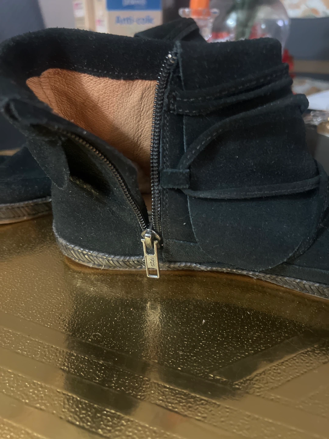 1 / 41 / 4Buy & SellUGG Black Suede BootsUGG Black Suede Boots$40Selling a pair of UGG boots in black suede. They have a zipper and the UGG logo is visible on the sole and inside the boot. Great for fall or winter!BrandUGGWHERE TO MEETUptown HarlemView MapSELLERverifiedEvelynEast Harlem59856 reviews1 chats·1 favorites·34 viewsSEND CHAT TO SELLERHi Evelyn! I’m interested in your listing.Hi Evelyn! I’m interested in your listing.Get the Karrot app to chatSign In to chat