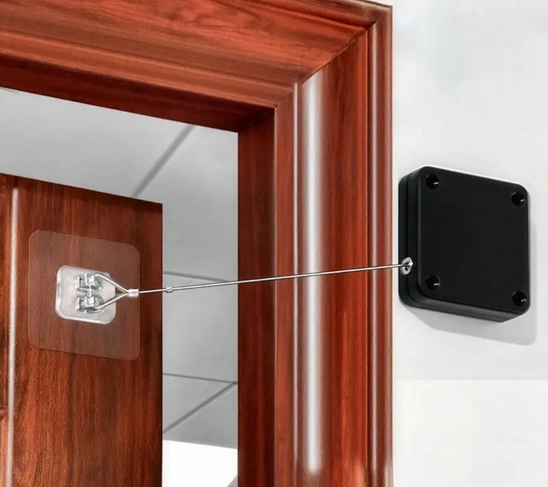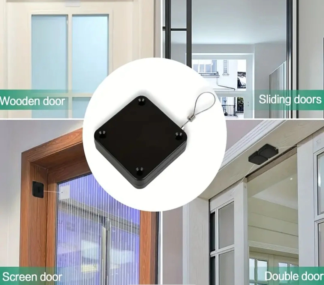 64Selling an automatic door closer in black. It's designed to automatically close doors behind you. Great for various door types like wooden doors, sliding doors, screen doors, and double doors. Easy to install and use!