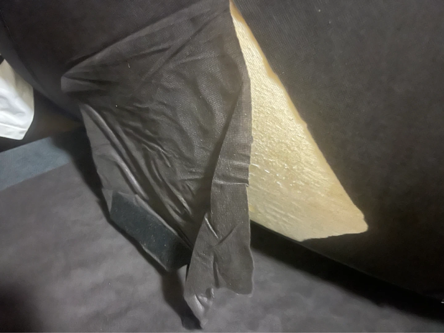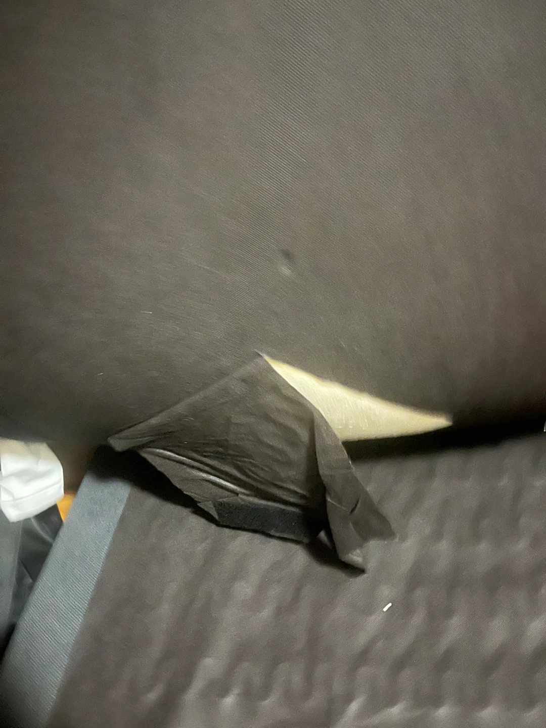 Has a tear under the cushion. Can be sown.