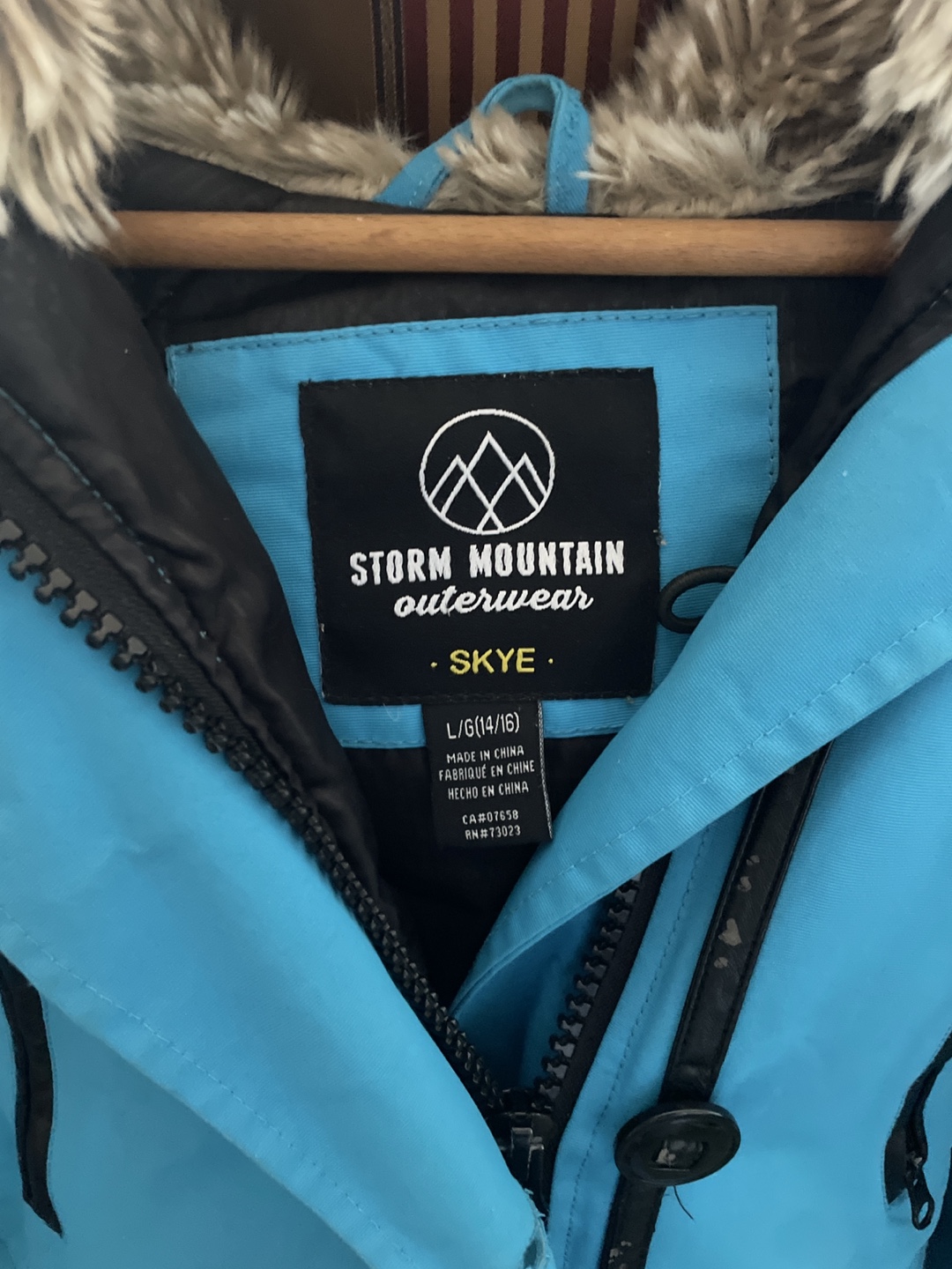 Selling a Storm Mountain Outerwear jacket in size kids, L (14/16). It's a Skye model. Down and feather fill d. Great for keeping warm during the colder months!