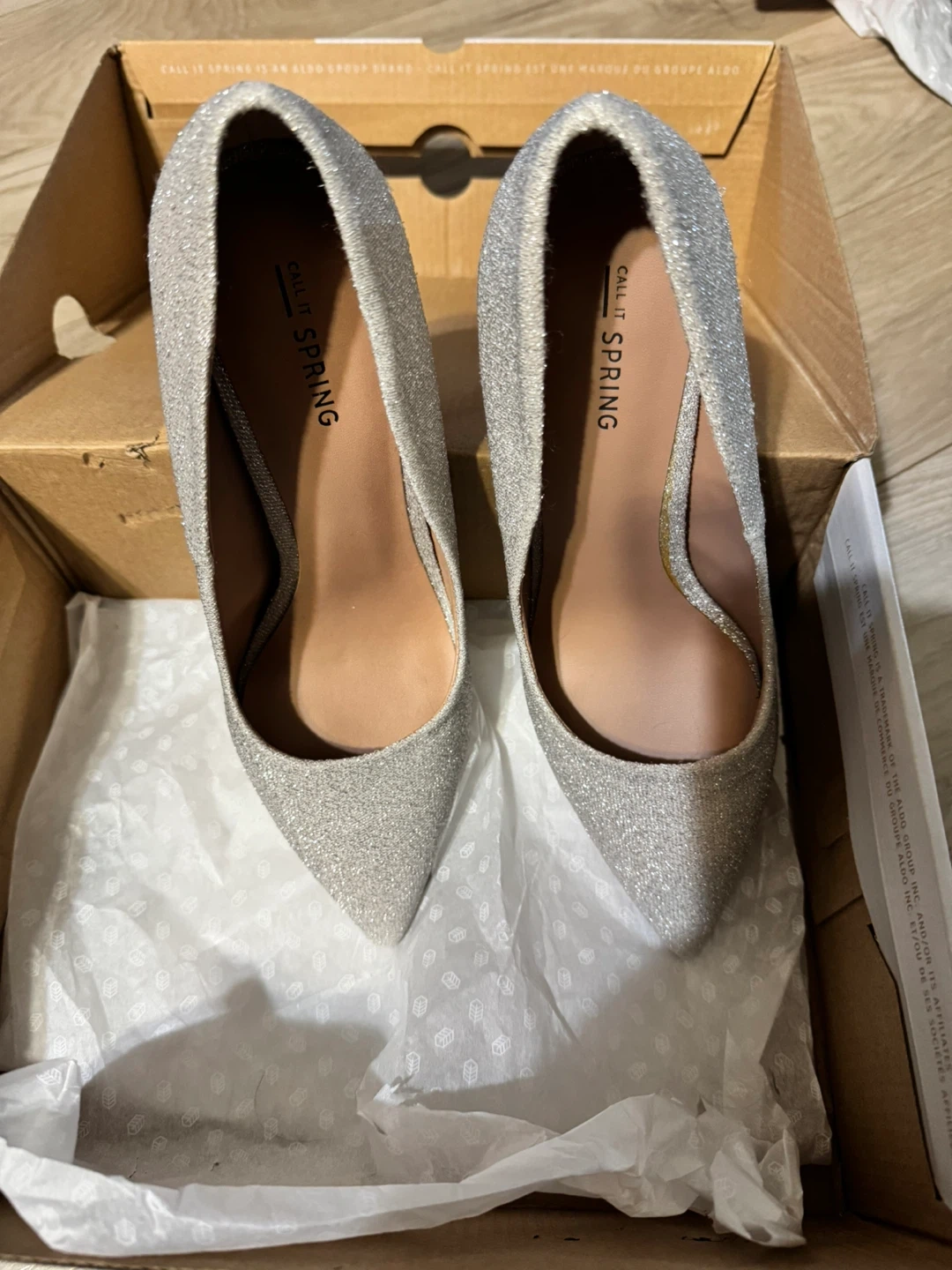 Selling a pair of Call It Spring heels in size 8.5. They're a lovely pewter colour and come with the original box!